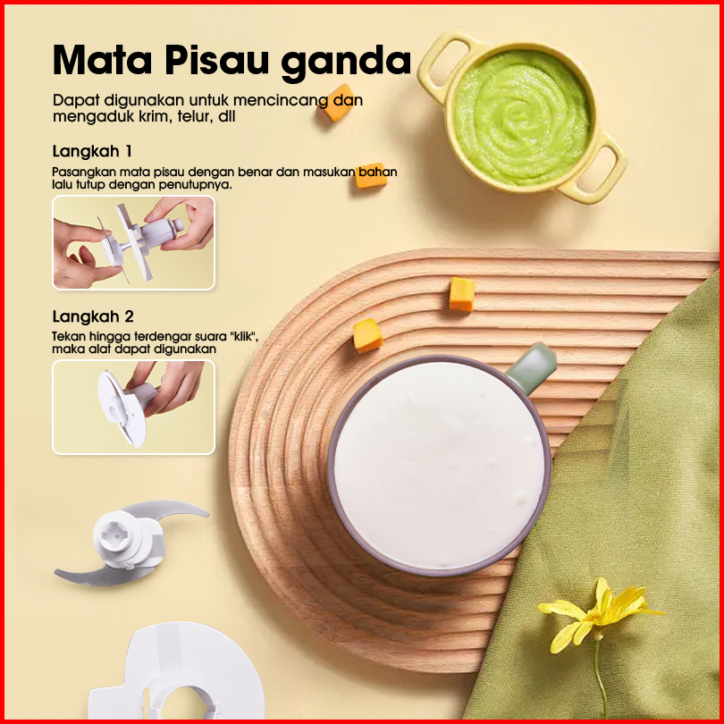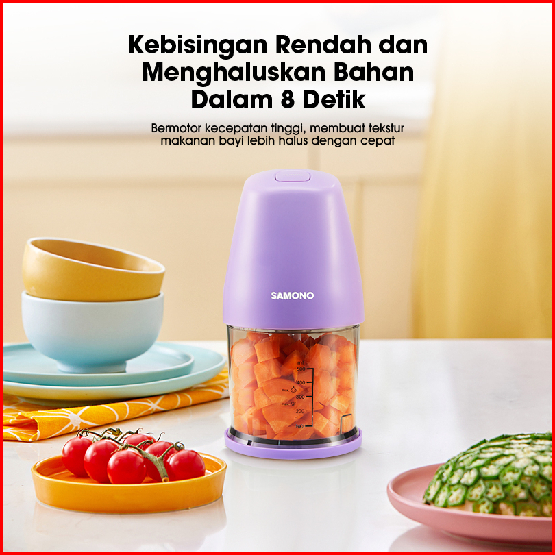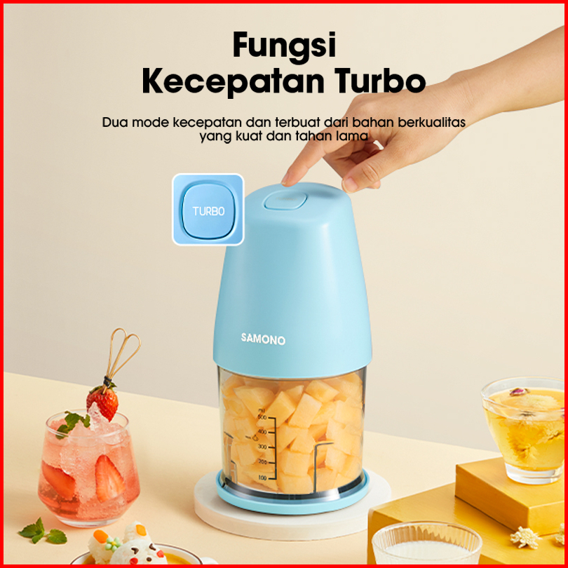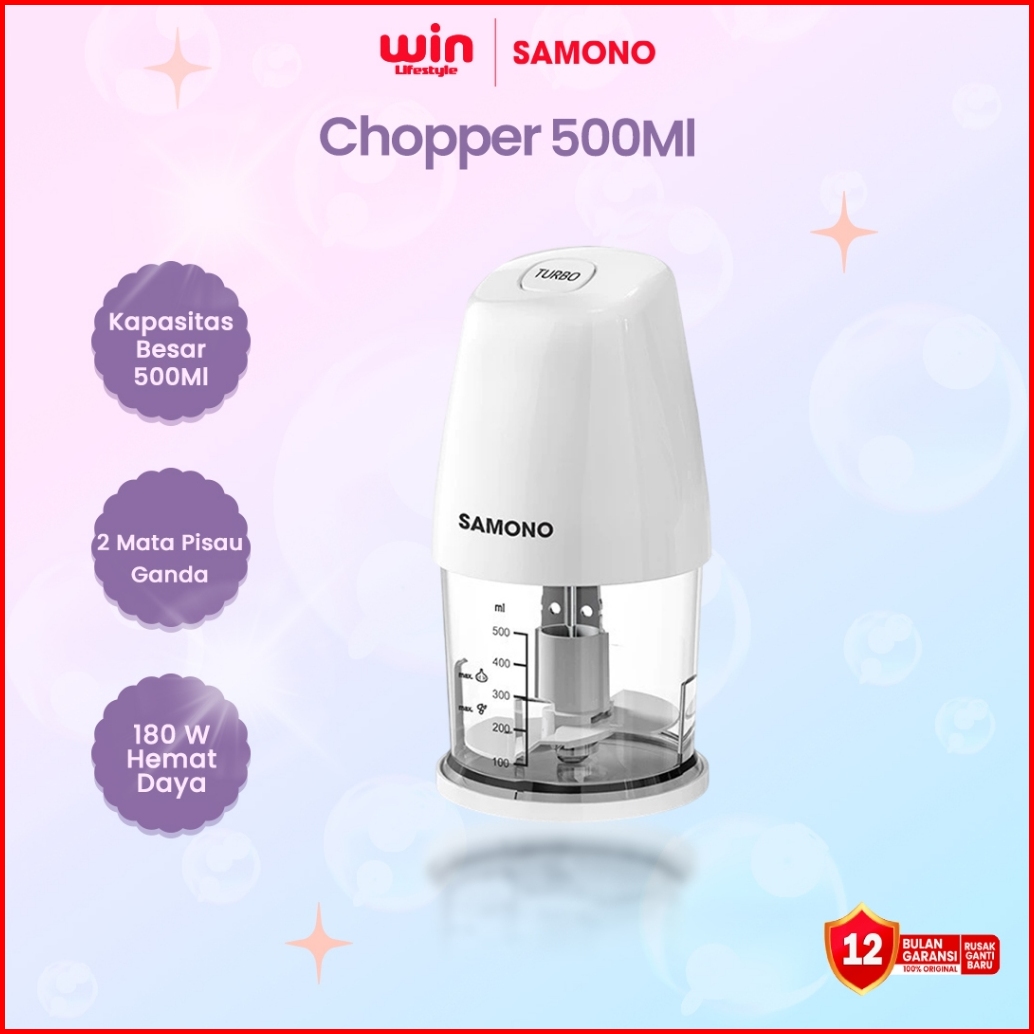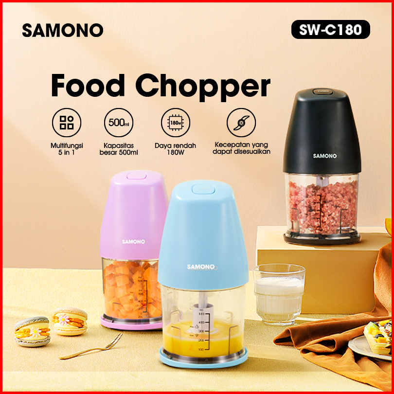 Samono Food Chopper 500ml Multifungsi Low Watt 180w Food Processor Penggiling Daging 2 Mata Pisau Sw-c180 - Garansi 1 Ta