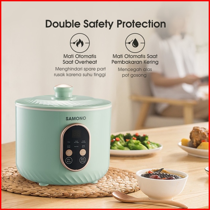Samono Panci Listrik Serbaguna Multi Rice Cooker Kapsitas 2l Lapisan Keramik Sw-dg03