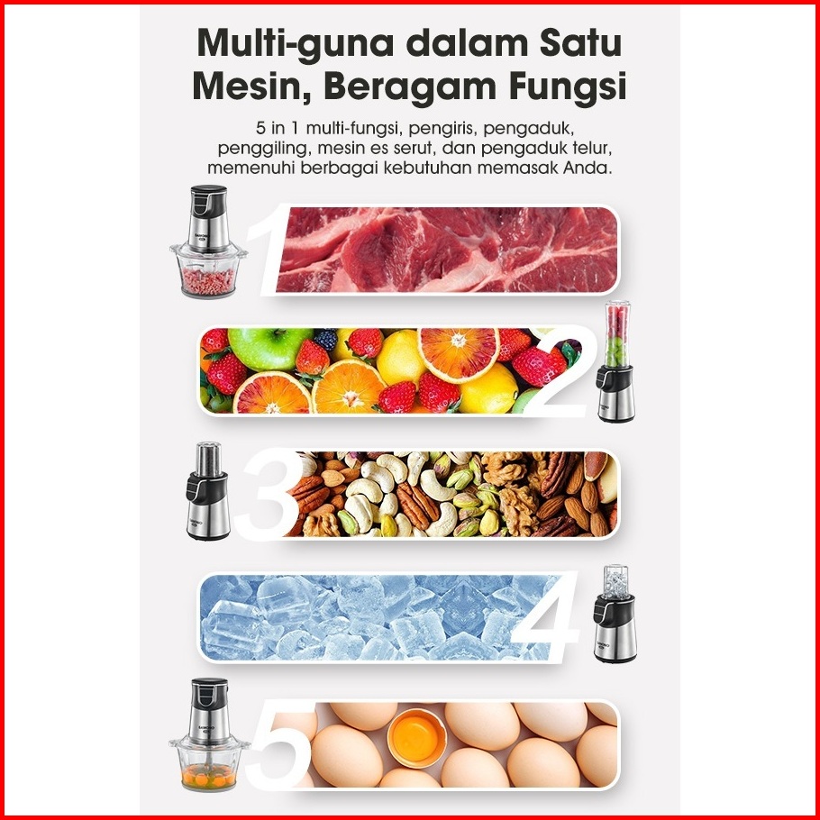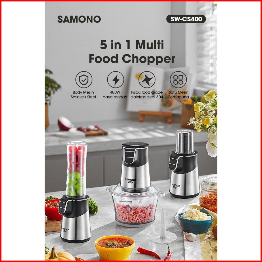 Samono Food Chopper Low Watt 5 In 1 Multifungsi Multi Food Chopper Penggiling Daging Sw-cs400 - Garansi 1 Tahun