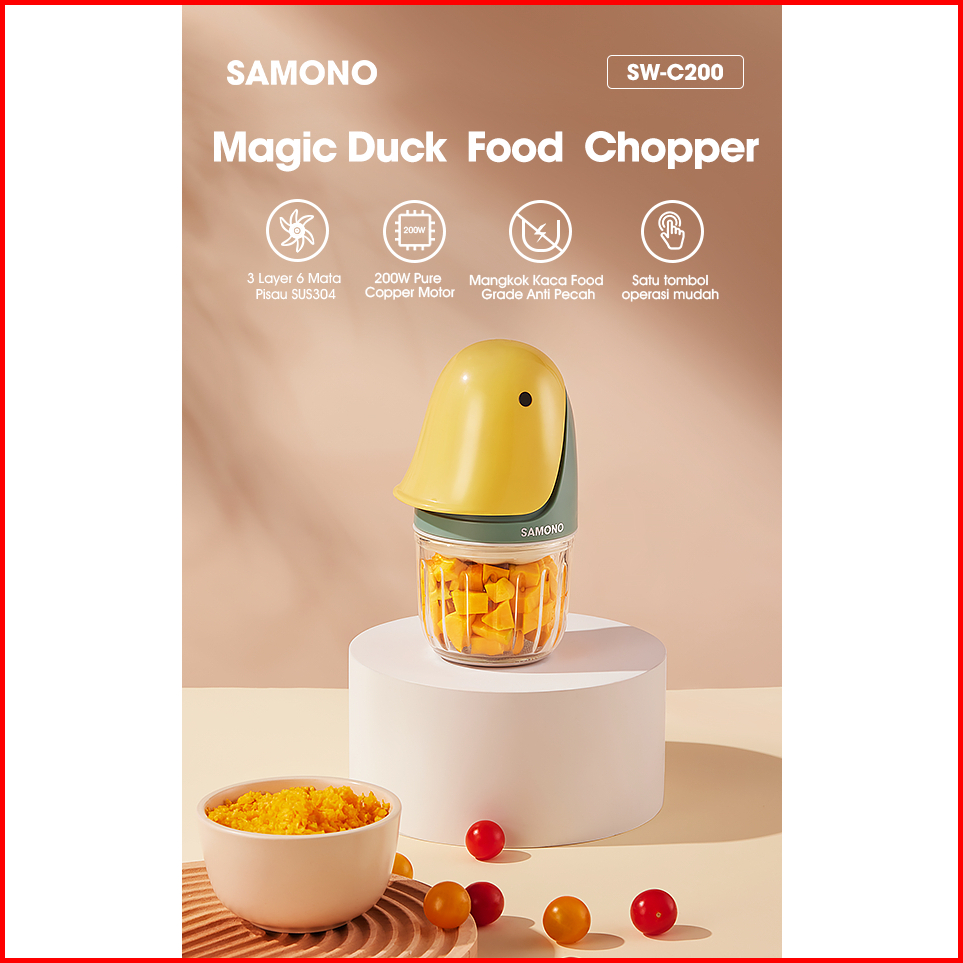 Samono Mini Chopper 300ml Portable Magic Duck Blender Mini 200w Dengan 6 Mata Pisau Tajam Chopper Mpasi Sw-c200 - Garans