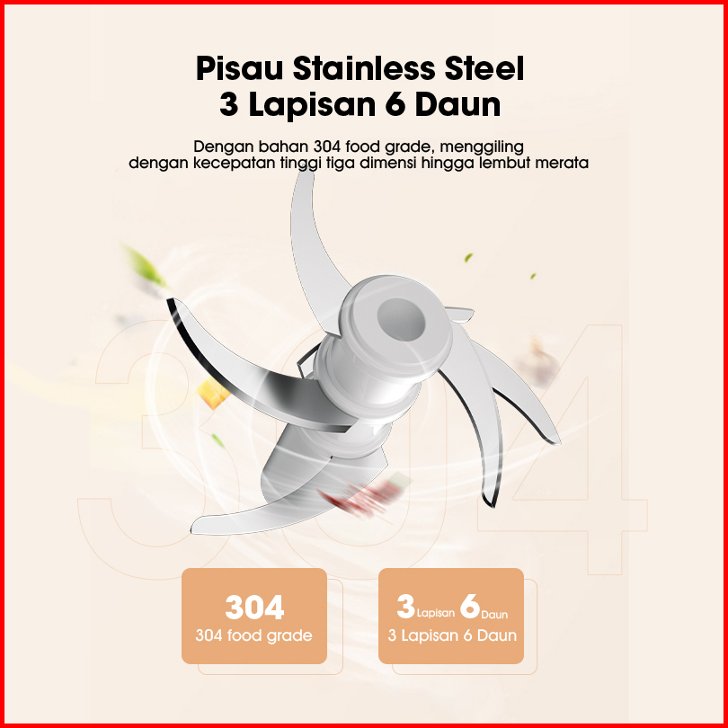 Samono Food Chopper 150w Mini Chopper 300ml Multifungsi Chopper Mpasi Portable Stainless Steel Anti Karat Sw-c150 - Gara