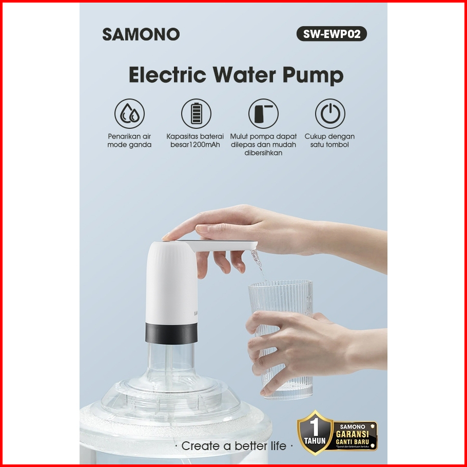Samono Pompa Galon Elektrik Low Noise Baterai 1200mah Pencetan Galon Otomatis Sw-ewp02 - Garansi 1 Tahun