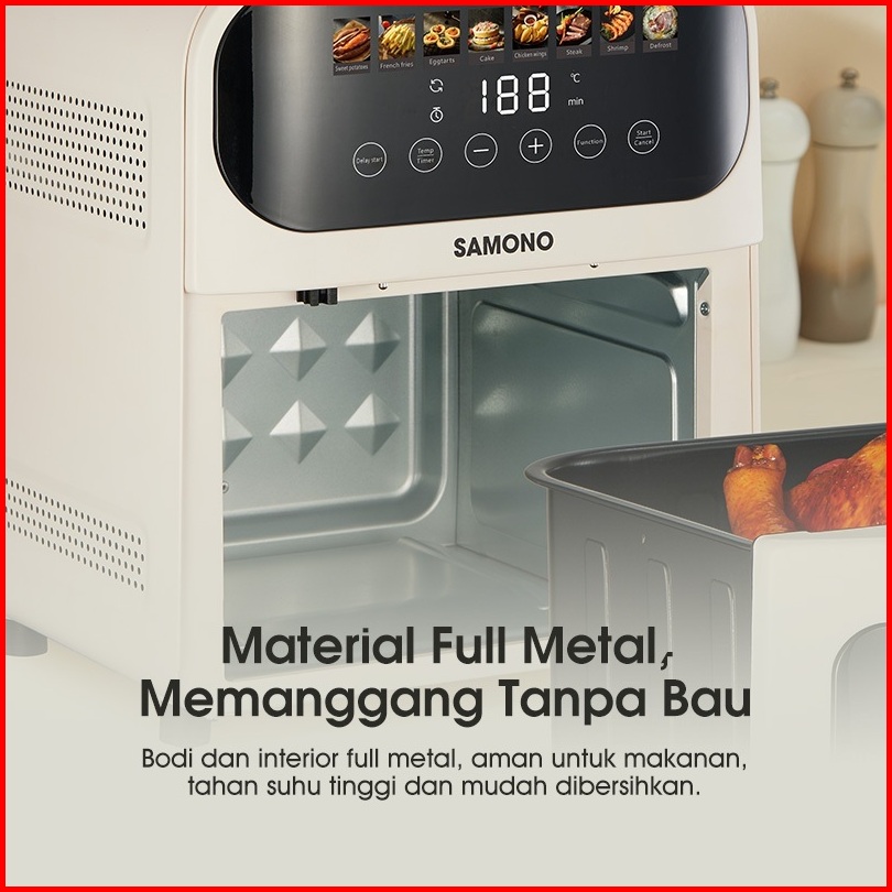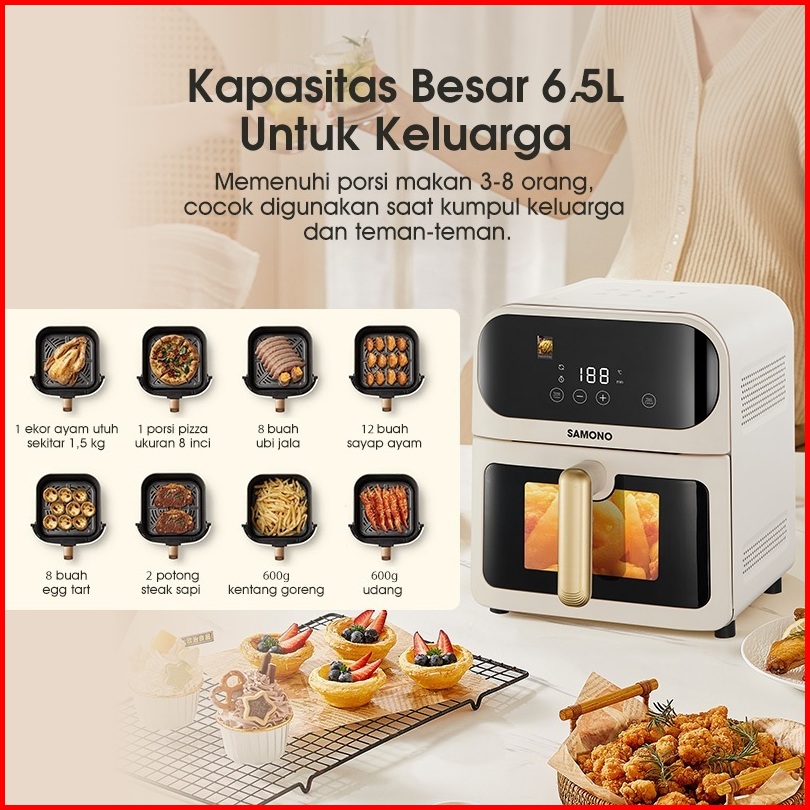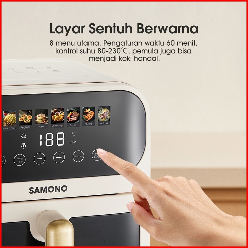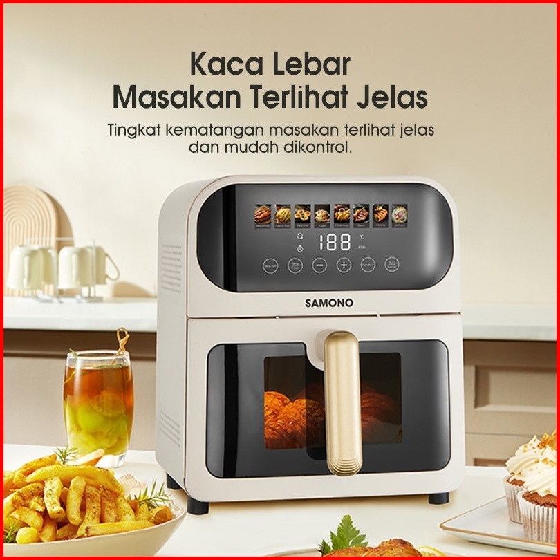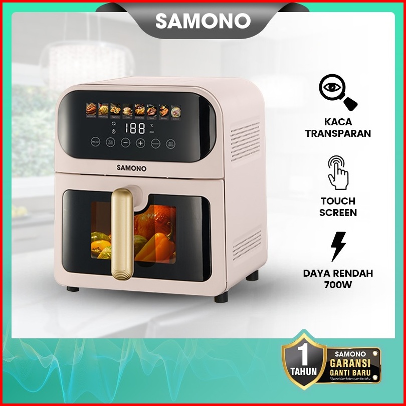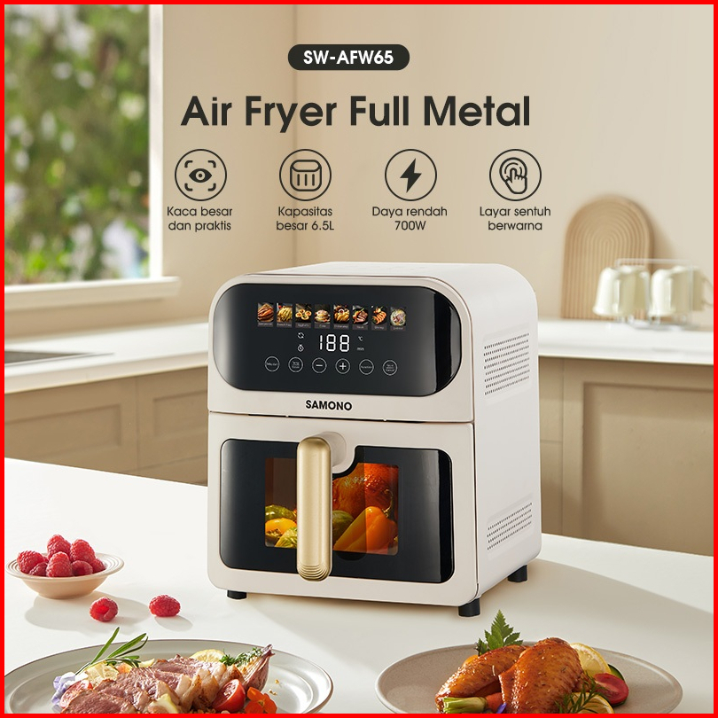 Samono Air Fryer Touch Screen 6 5 Liter Low Watt Body Metal Dengan Kaca Garansi 1 Tahun Sw-afw65