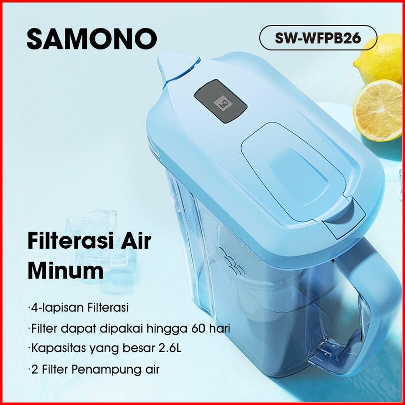 Samono 2.6l Teko Plastik Filterasi Air Minum 4 Lapisan Dapat 2 Filter Food Grade Pitcher Filter Kettle Jug Plastik Sw-wf