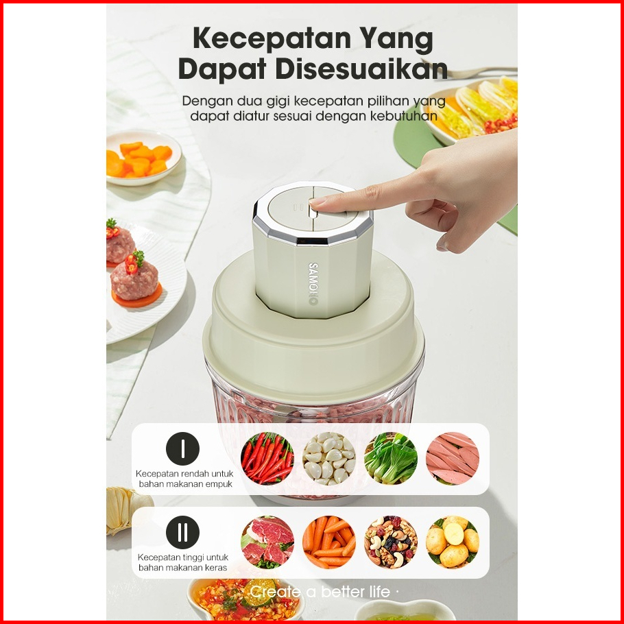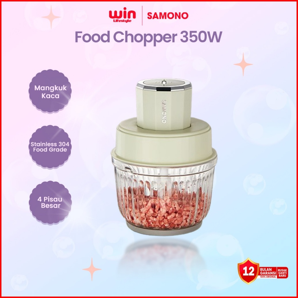 Samono Food Chopper 2.5 Liter Multifungsi Low Watt 350w Wadah Kaca Premium 4 Mata Pisau Penggiling Daging Penghalus Maka