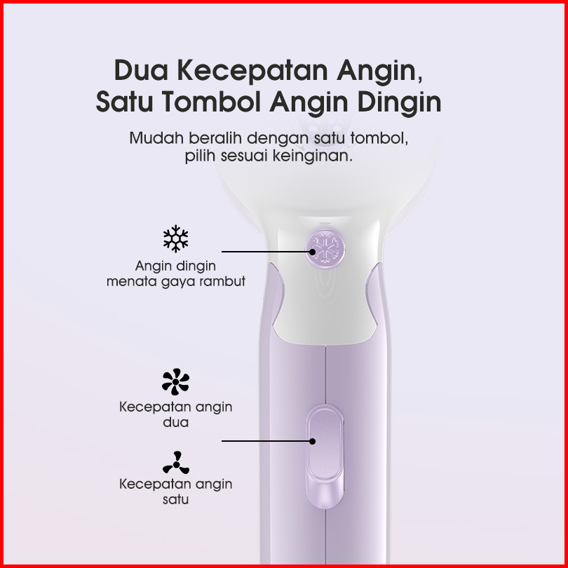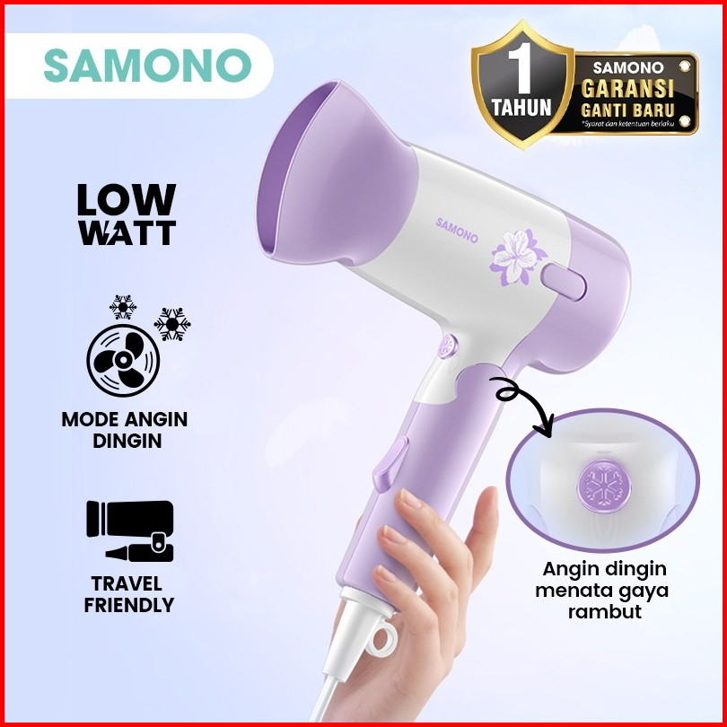 Samono Hair Dryer 300 Watt Pengering Rambut Low Watt 2 Kecepatan Angin Bisa Dilipat Travel Friendly Sw-hd10 - Garansi 1