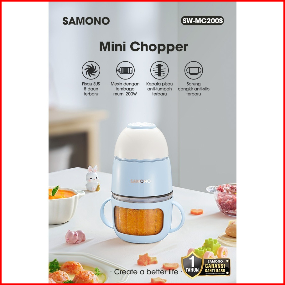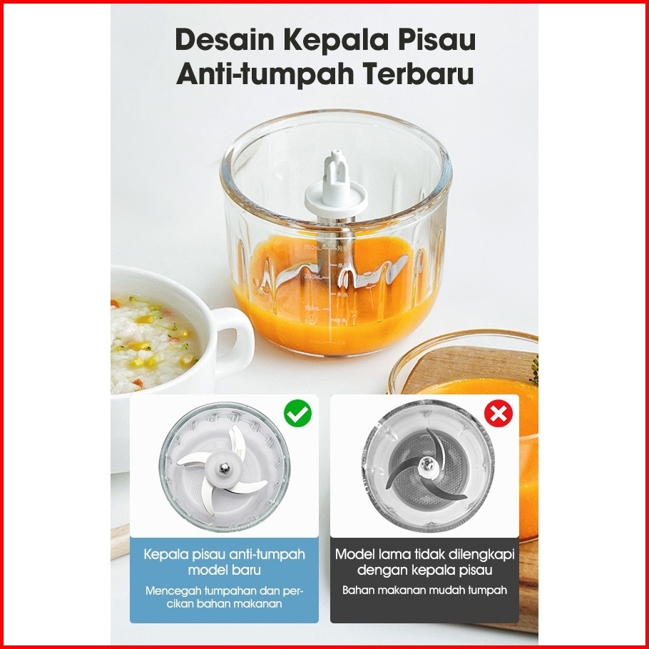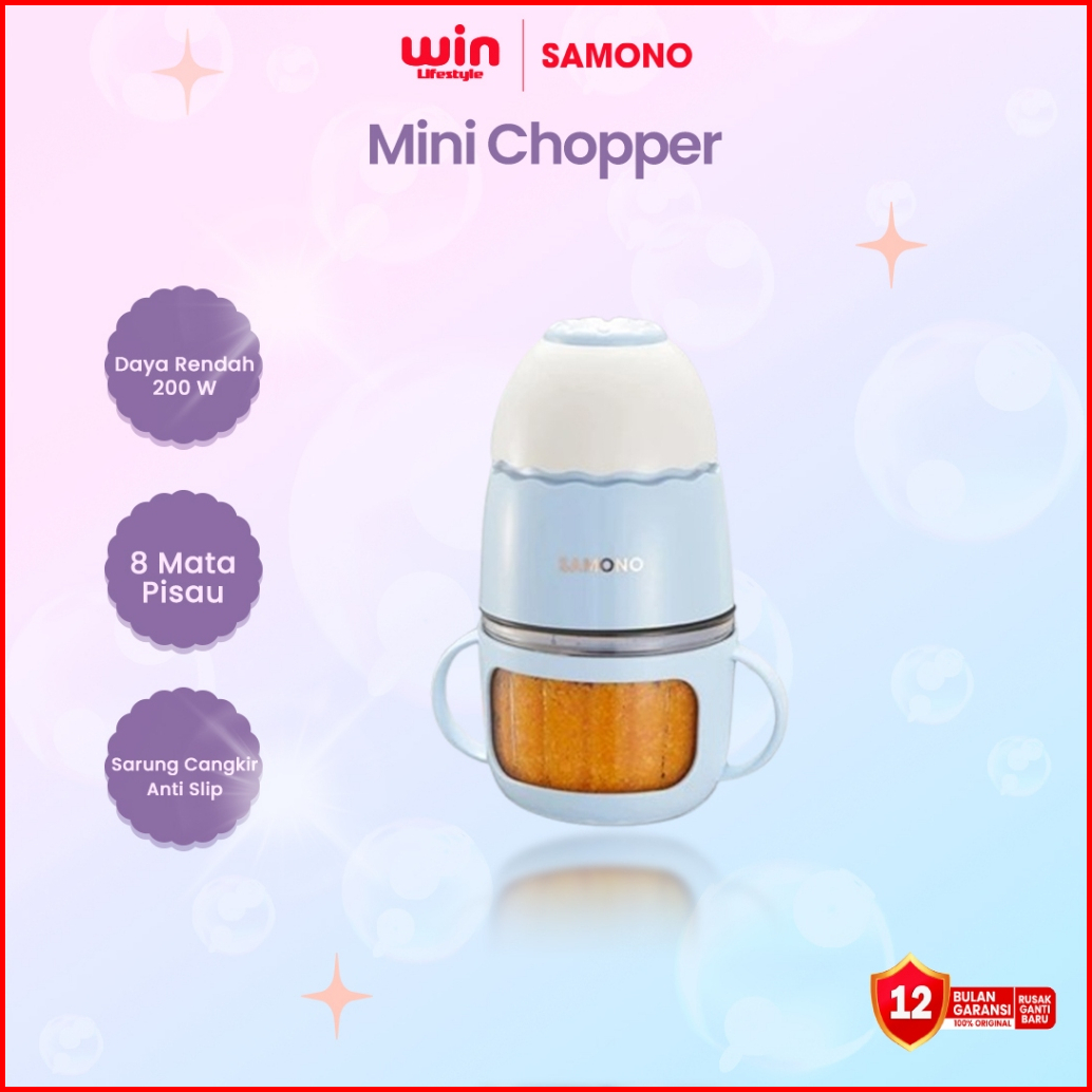 Samono Mini Chopper Mpasi 300ml Low Watt Food Chopper Mesin Penghalus Daging Dan Buah Food Processor Wadah Kaca Tebal Sw