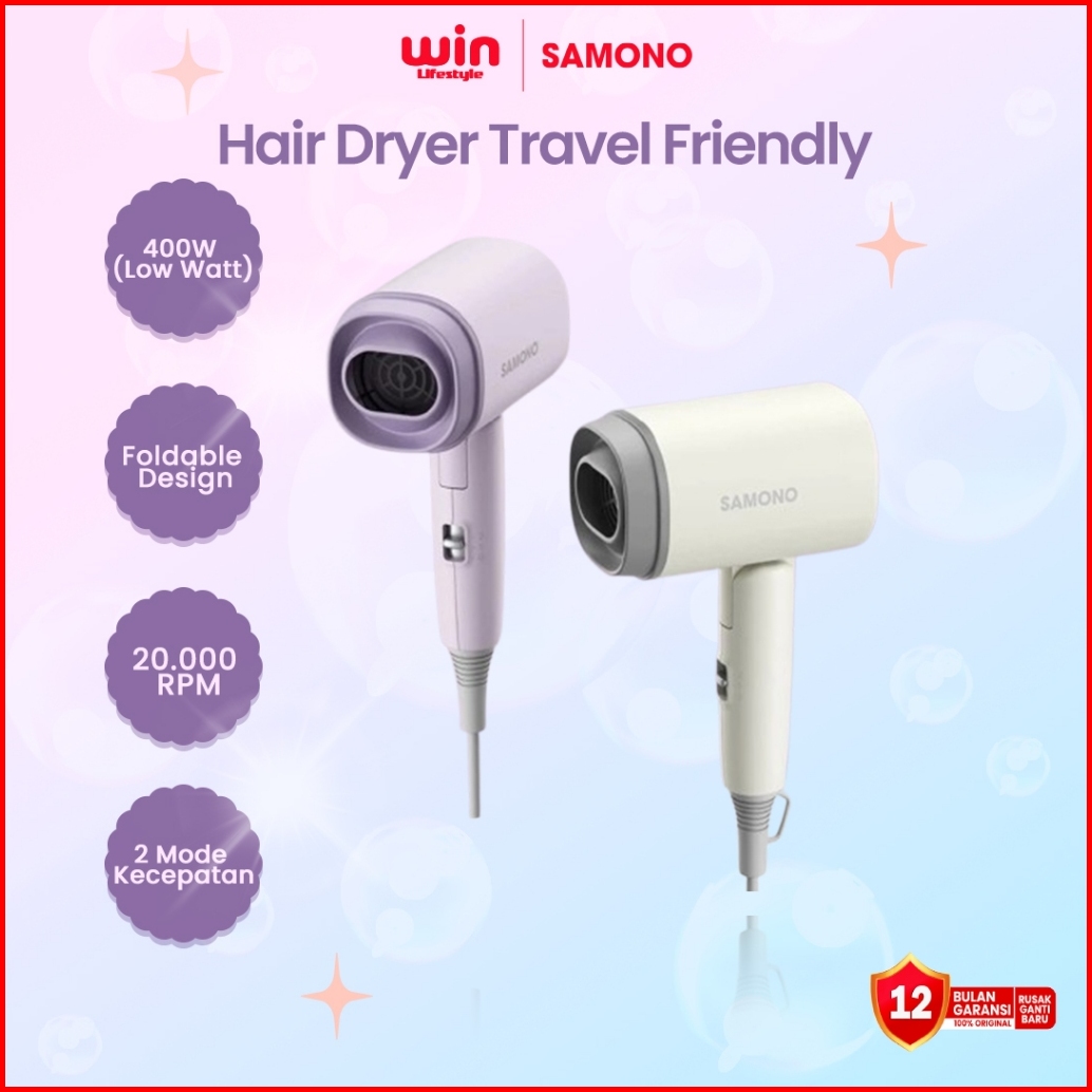Samono Hair Dryer Premium Built Quality 2 Level Angin Pengering Portable Travel Rambut Quick Drying Sw-hd30