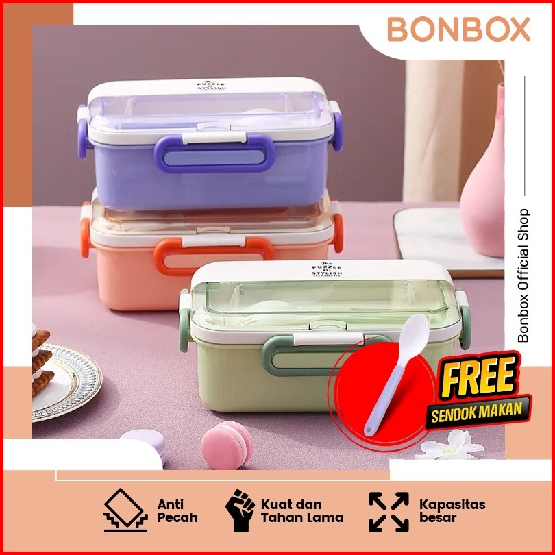 Bonbox Lunch Box Kotak Bekal Makan Tempat Makan Anti Tumpah Free Sendok Makan Btw30602