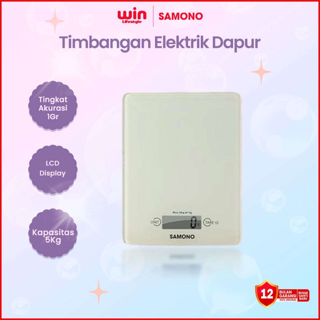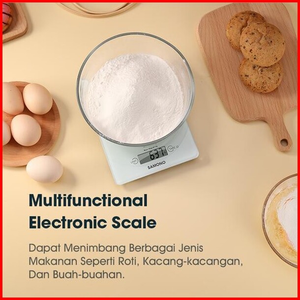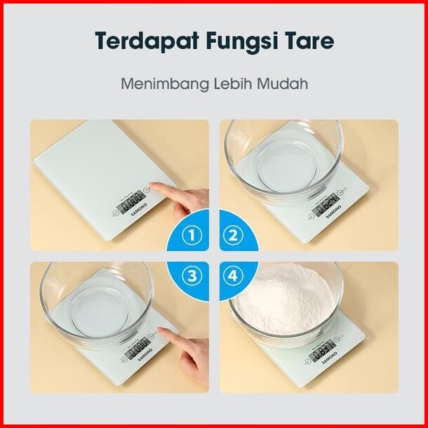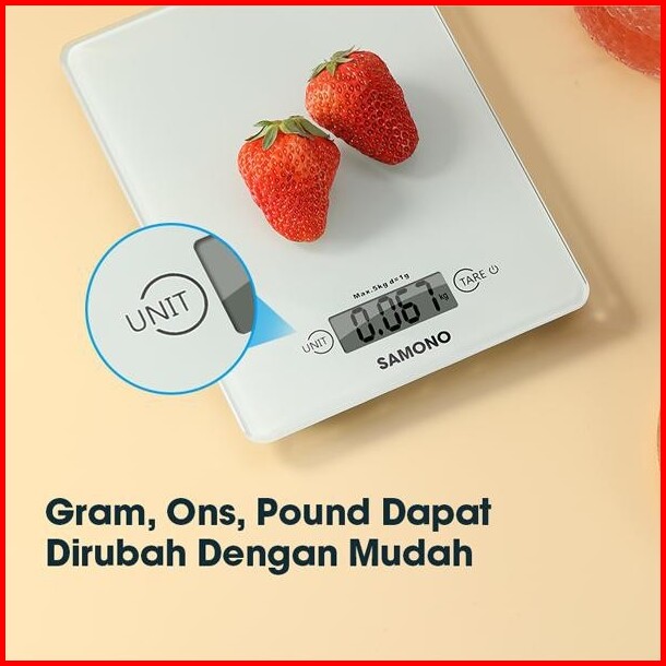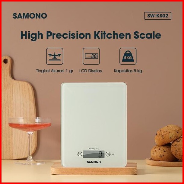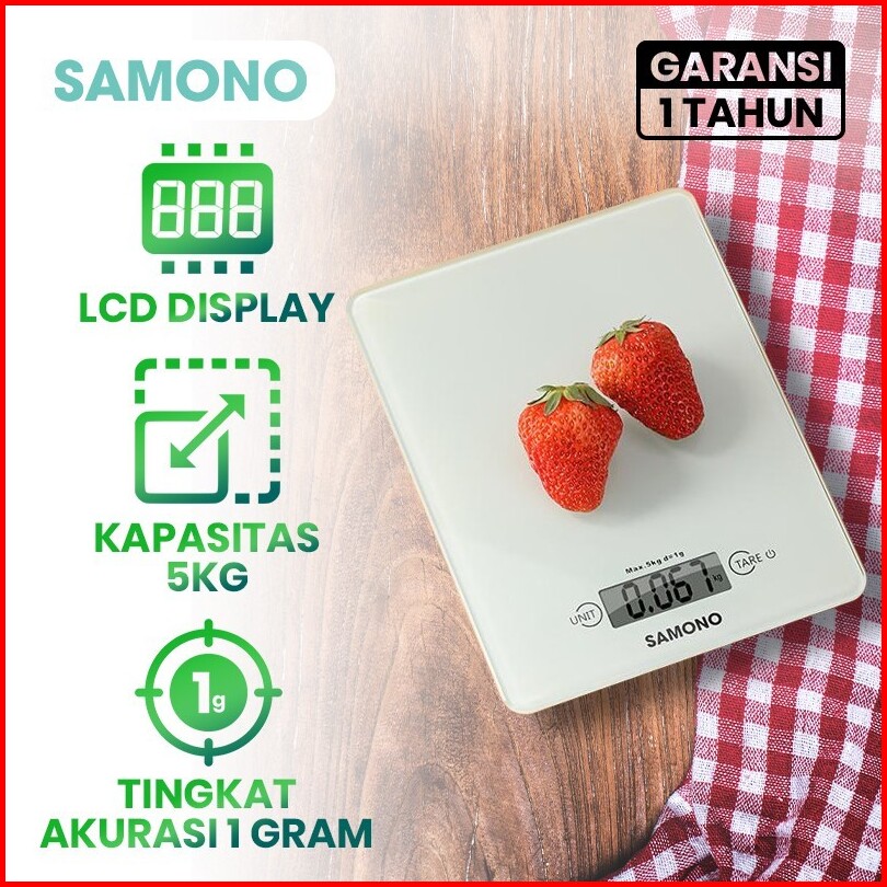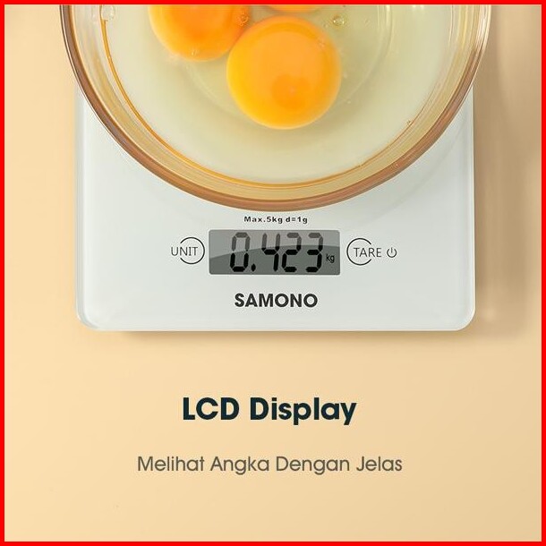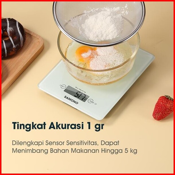 Samono Timbangan Dapur Elektrik Kaca Digital Lcd Display Tingkat Akurasi 1 Gram 5kg Sw-ks02