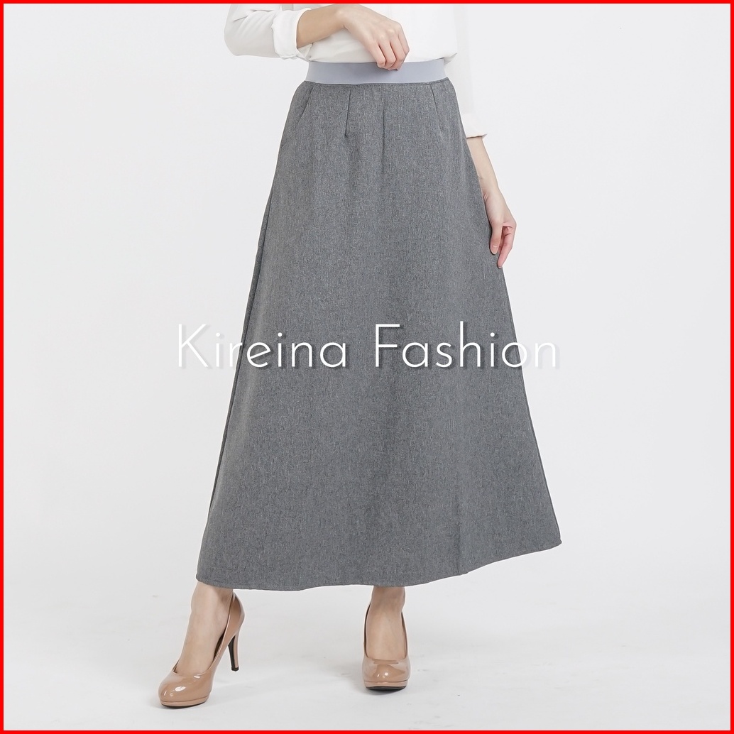 Kireina - Rok A Line Pinggang Karet Bahan Grasella Premium
