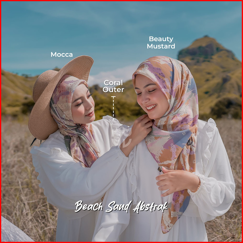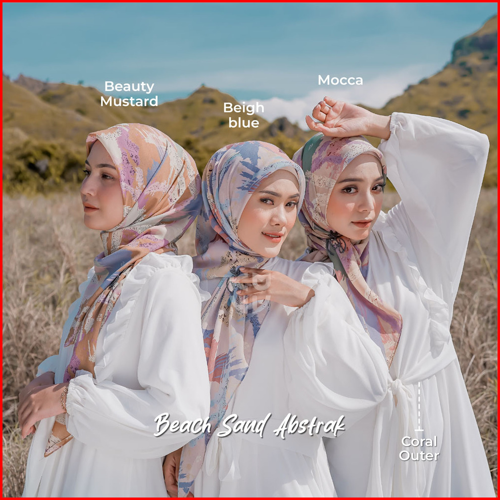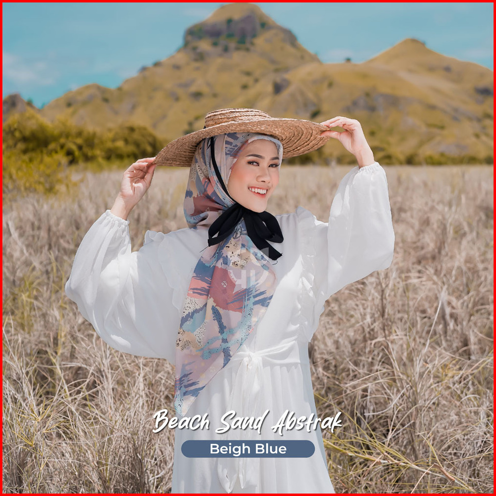 Koyu Hijab Segiempat Viney Jepang Motif Abstrak Beach Sand