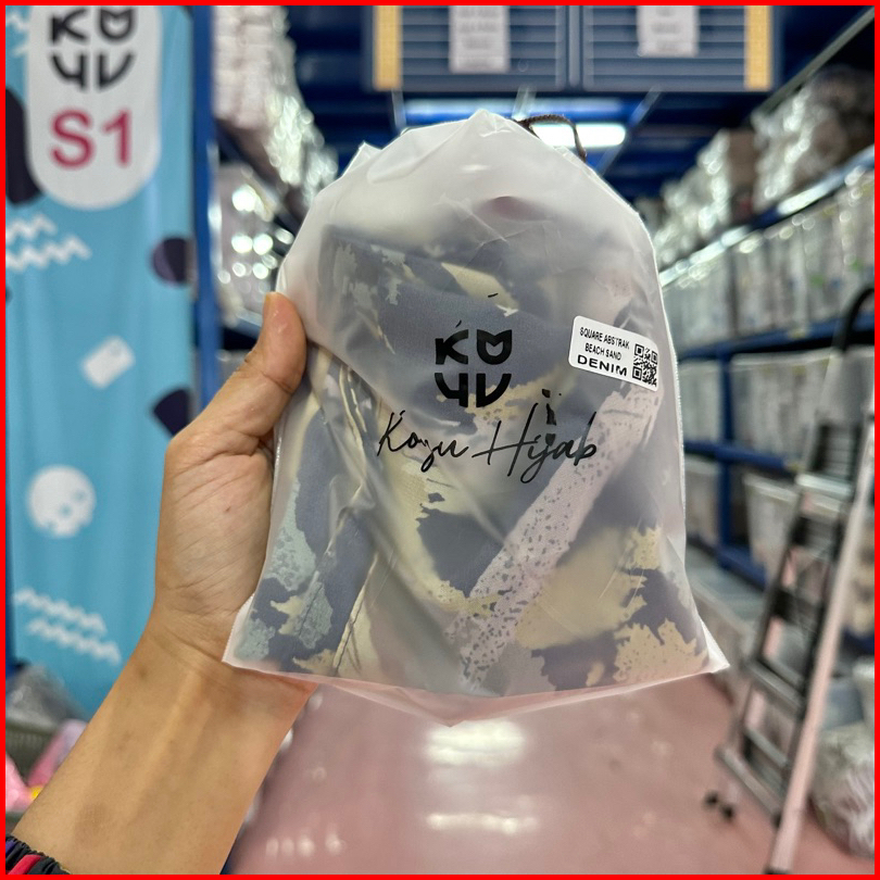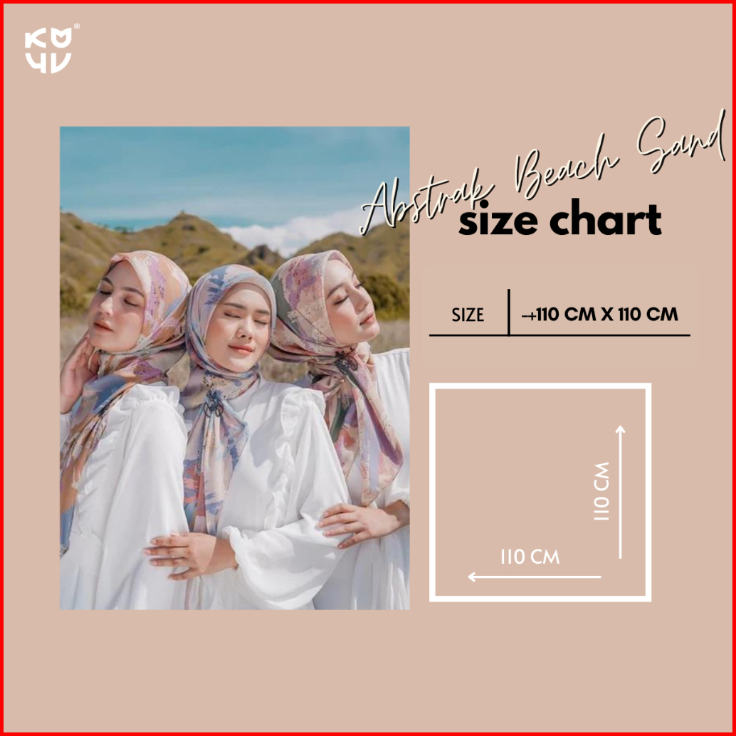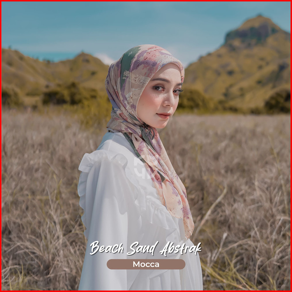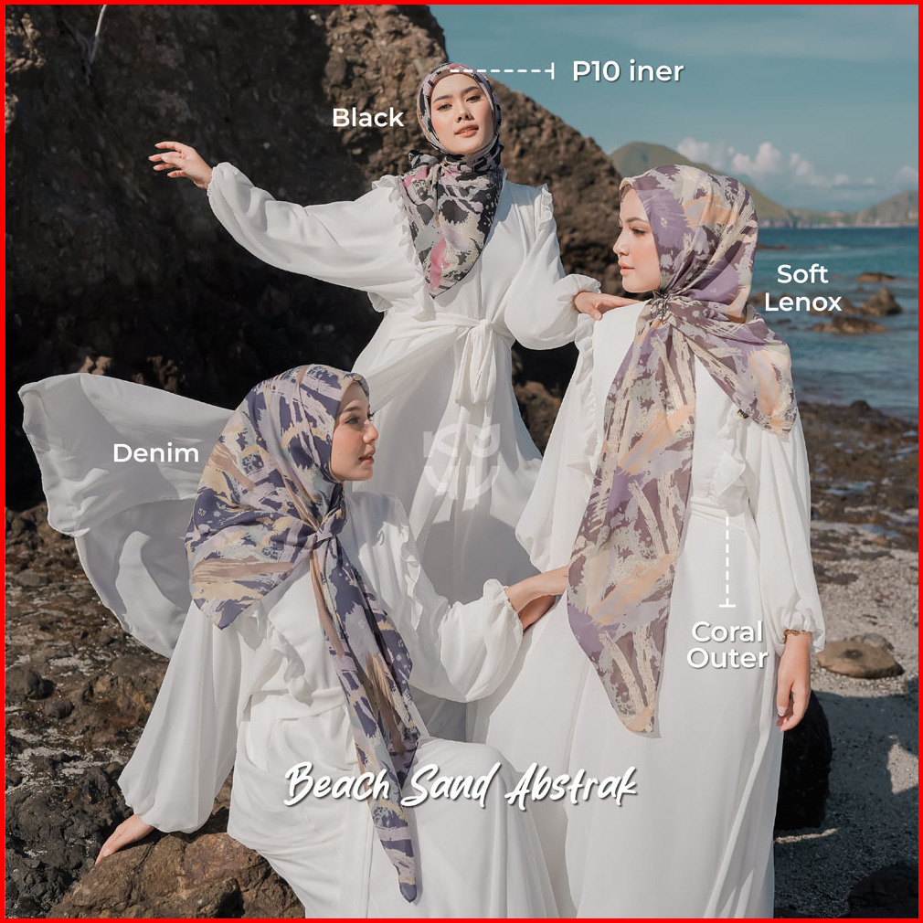 Koyu Hijab Segiempat Viney Jepang Motif Abstrak Beach Sand