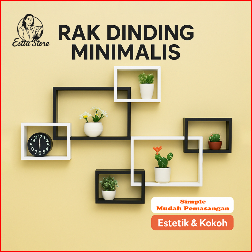 Rak Dinding Kotak Minimalis Hiasan Dinding Sudut Estetik Mudah Pasang Kokoh