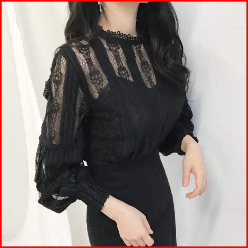 Alice Atasan Blouse Renda Wanita Lengan Panjang Hijab Friendly Casual
