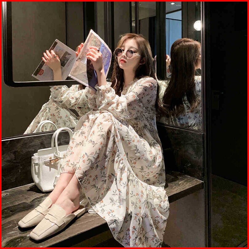 Anggi Dress Wanita Panjang Lengan Hijab Motif Bunga Hijab Friendly Casual
