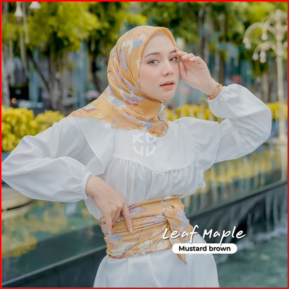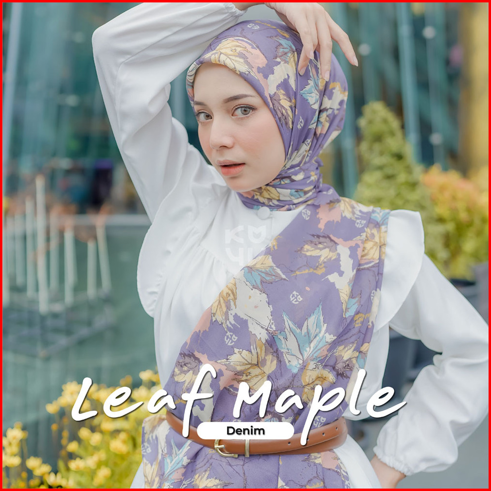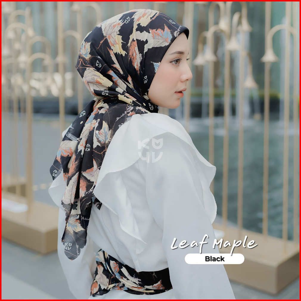 Koyu Hijab Segiempat Viney Jepang Motif Leaf Maple Autum Series