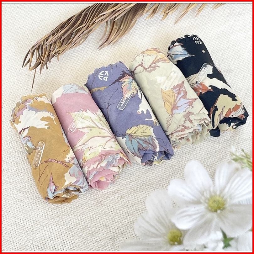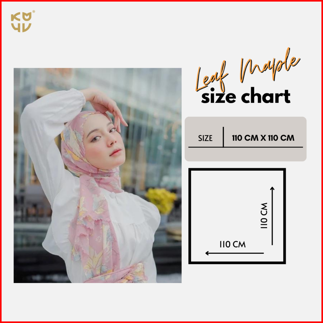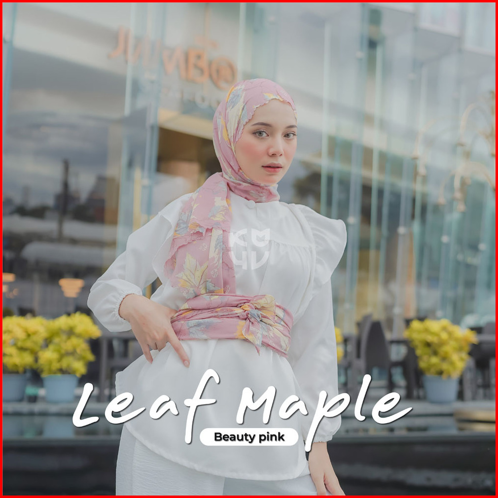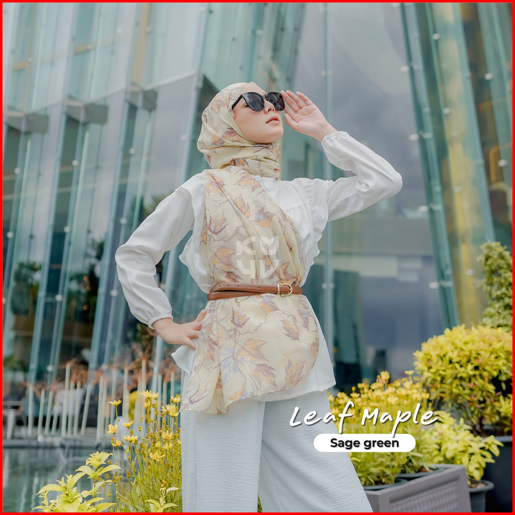 Koyu Hijab Segiempat Viney Jepang Motif Leaf Maple Autum Series