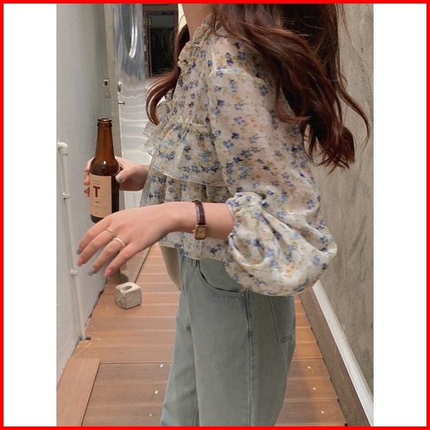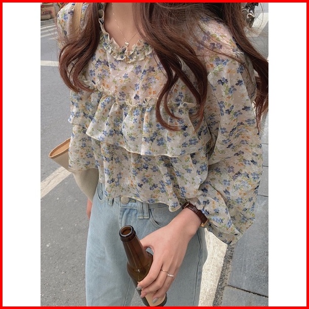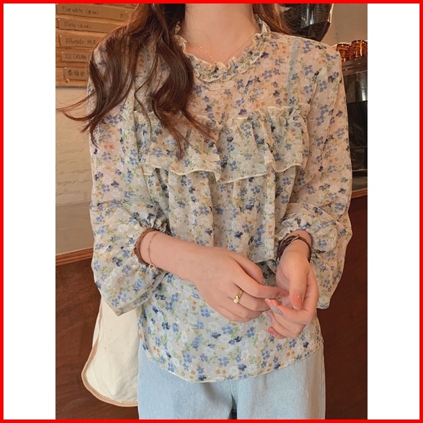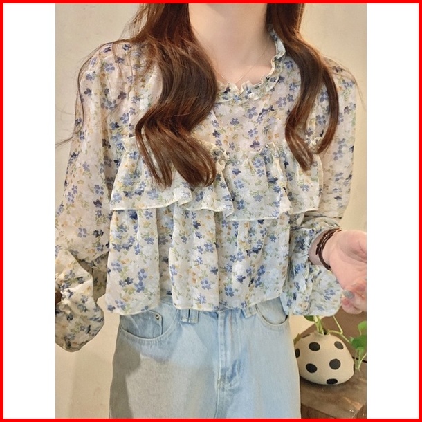 Bracha Blouse Atasan Wanita Motif Bunga Lengan Panjang Katun Hijab Friendly