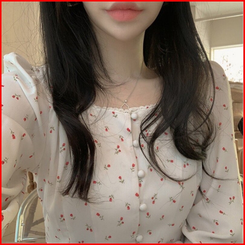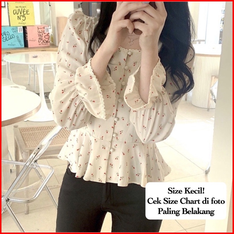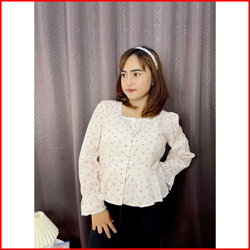 Bunga Blouse Wanita Korean Style Lengan Panjang Motif Bunga Mawar