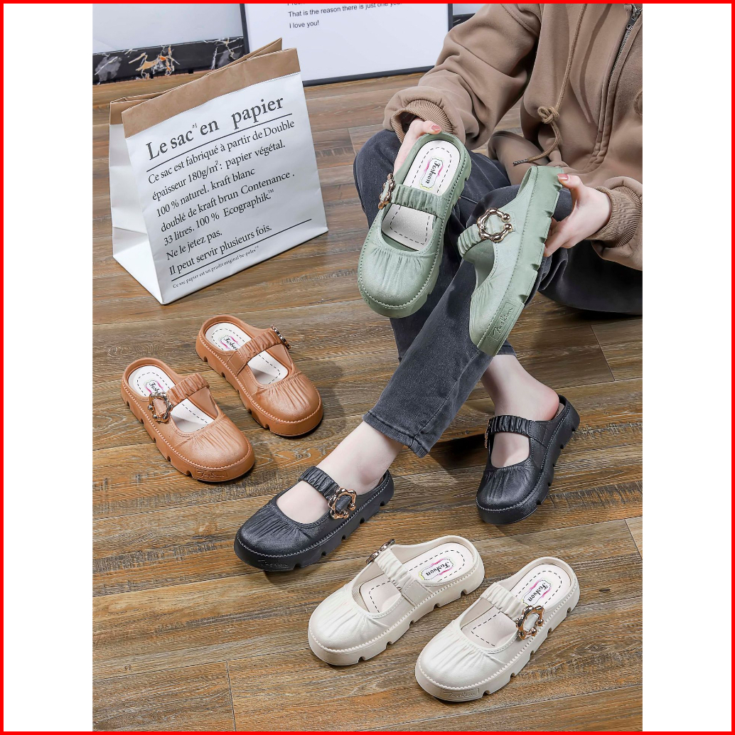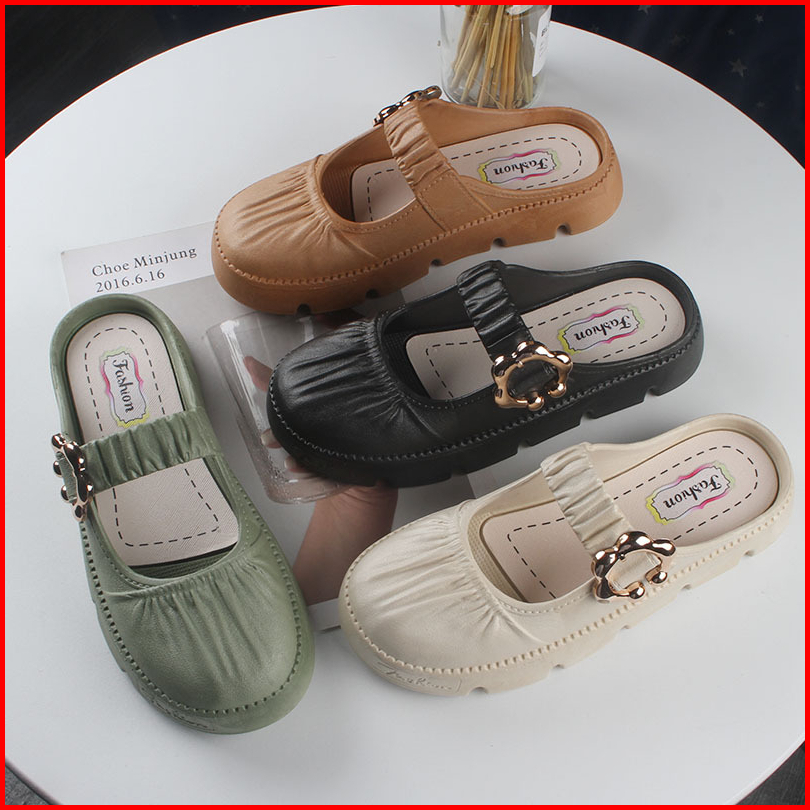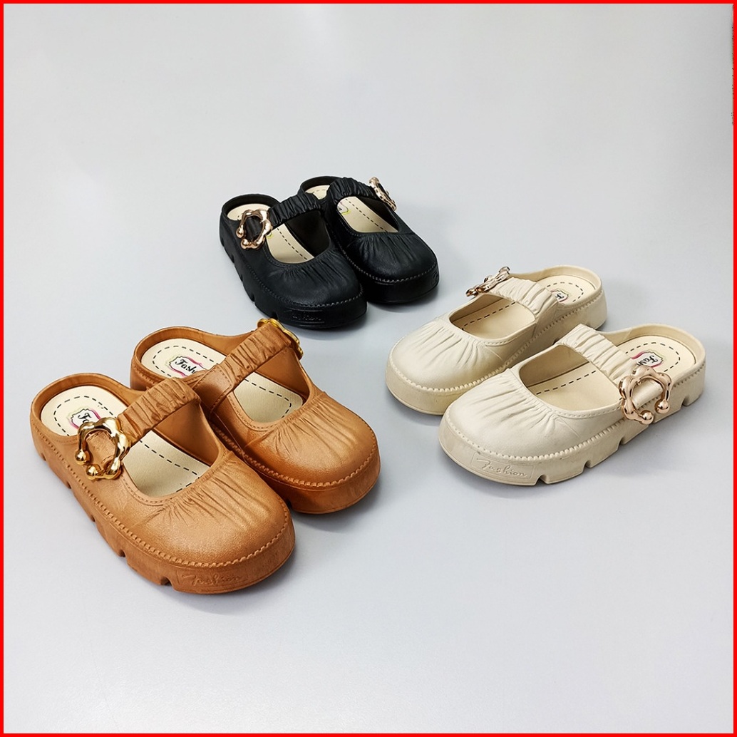 Cys Sandal Flat Wanita Model Slip On Tali Gesper Bunga Kekinian Korea Bahan Pvc Spt-63