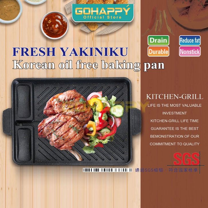 BBQ GRILL PAN Fresh Yakiniku Griller pan dengan 2 wadah sauce 2158 Panci alat panggang murah / anti lengket & anti karat