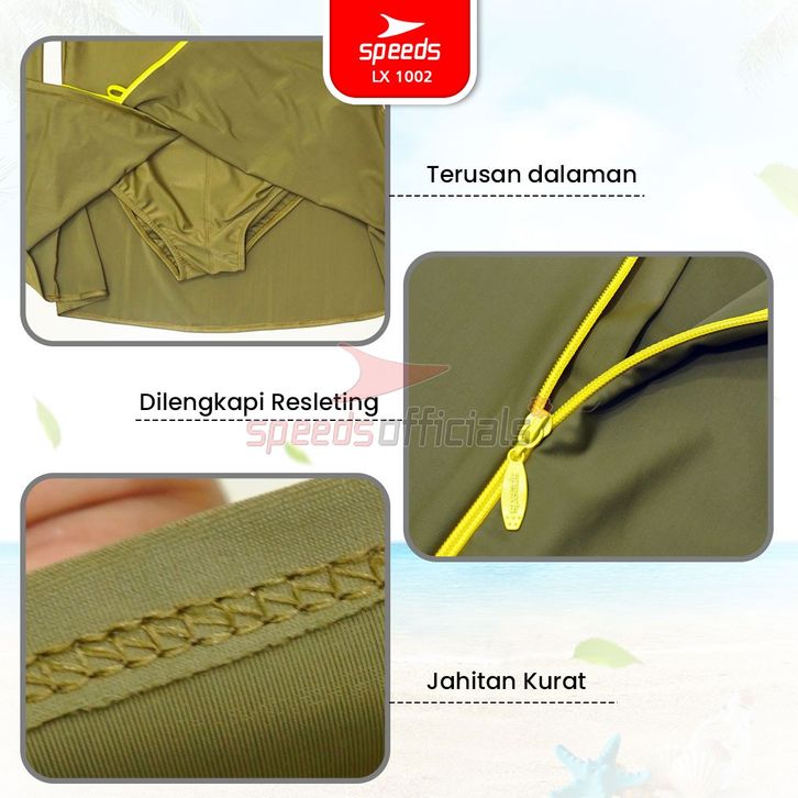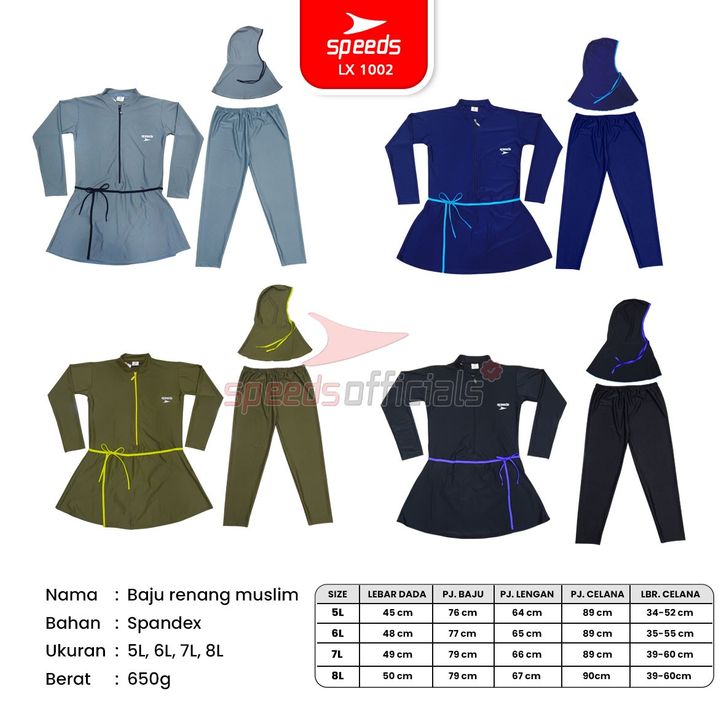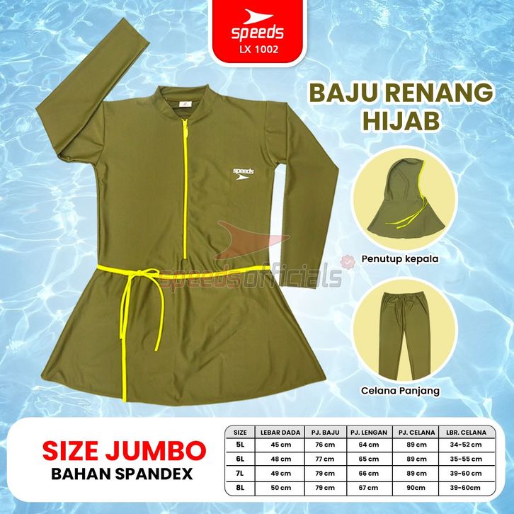 SPEEDS Baju Renang Wanita Muslim Wear Swimdress Jumbo 5L 6L 7L 8L Bahan Spandex Pakaian Renang 1002