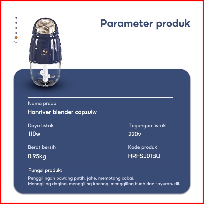 Han River Blender Portable Hrjc01wt-03 Blender Kapsul Food Processor Food Chopper Angkasawan Blender Mini Pengolah Makan