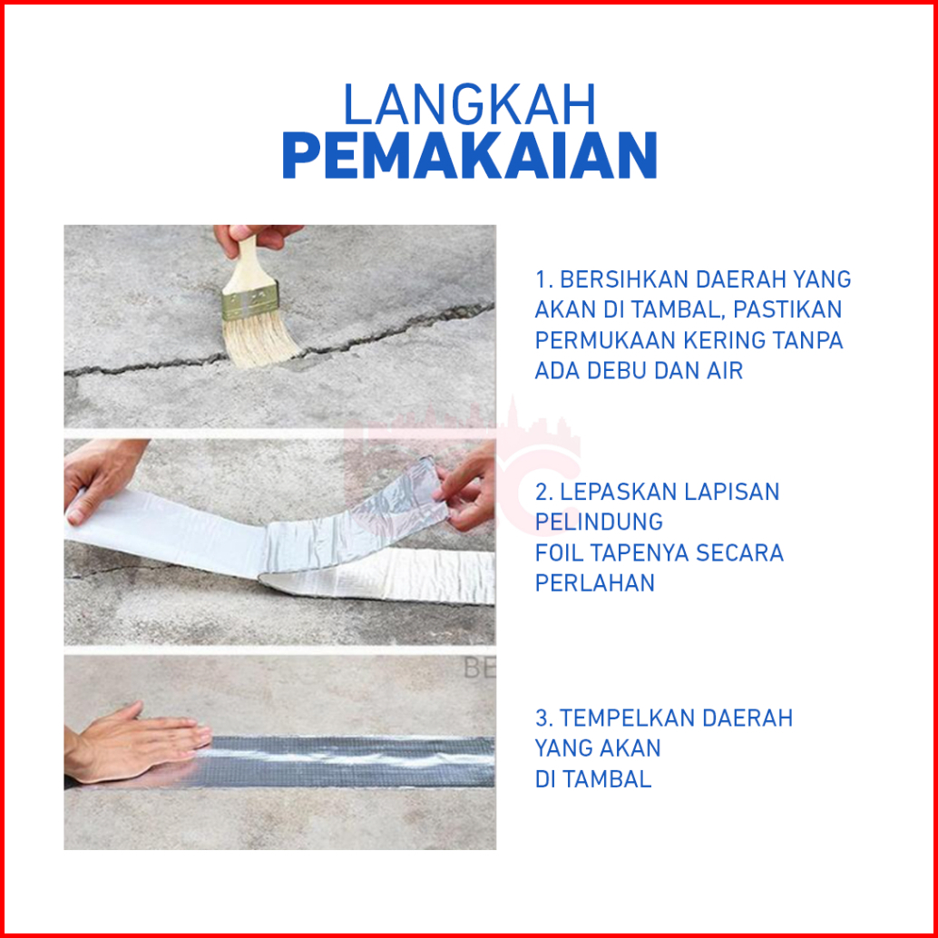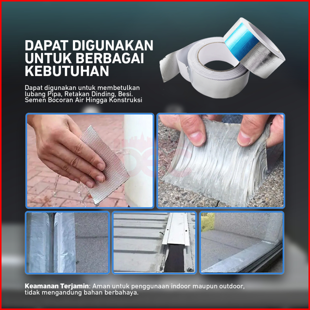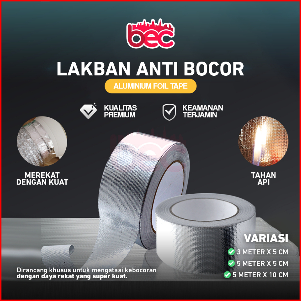 Bec Lakban Anti Bocor Lem Anti Air Aluminium Foil Butyl Super Waterproof Tape Tambal Silver