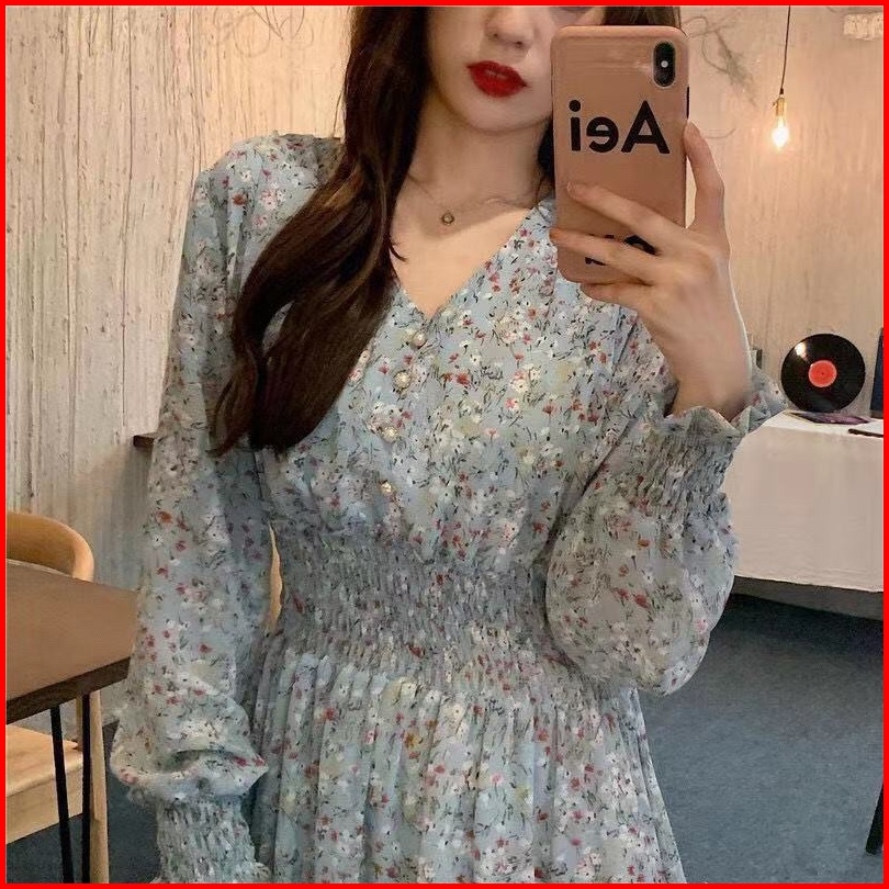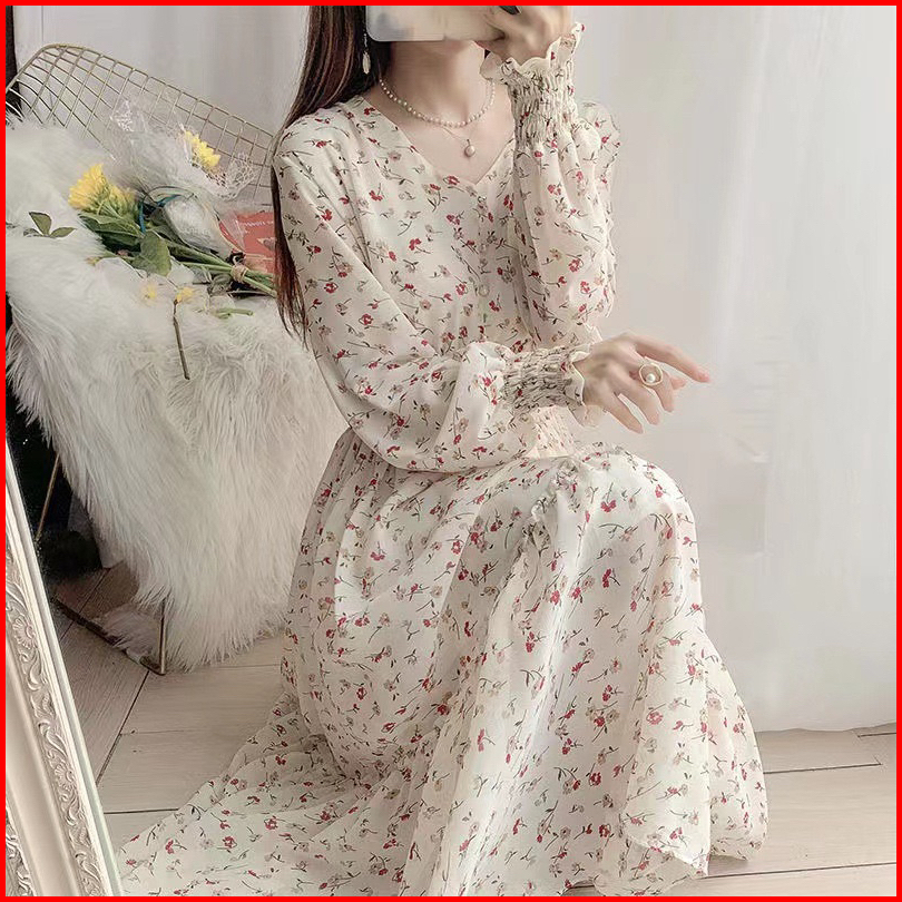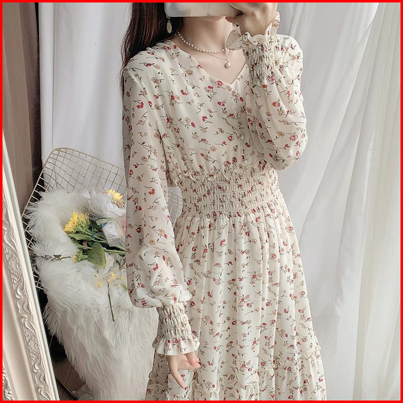 Jessica Dress Motif Tunik Bunga Sifon Lengan Panjang Hijab Friendly Casual