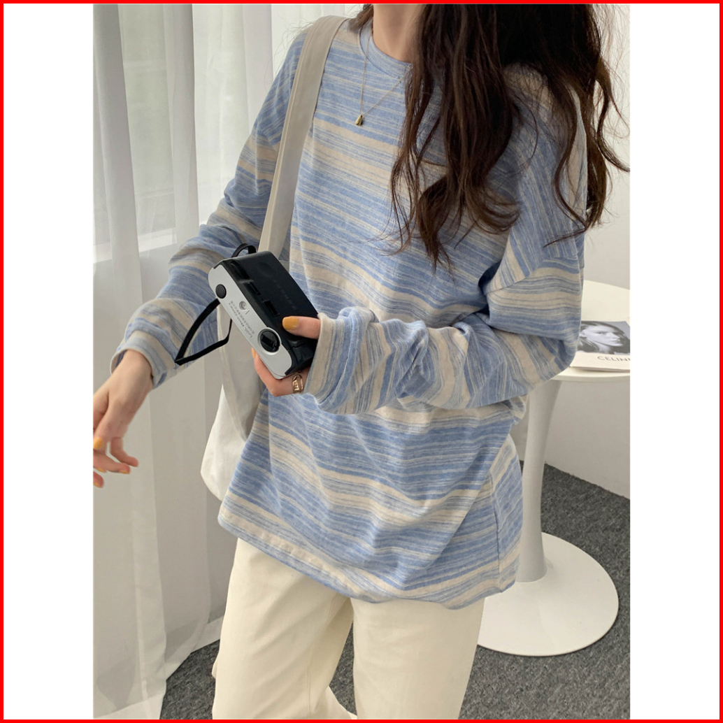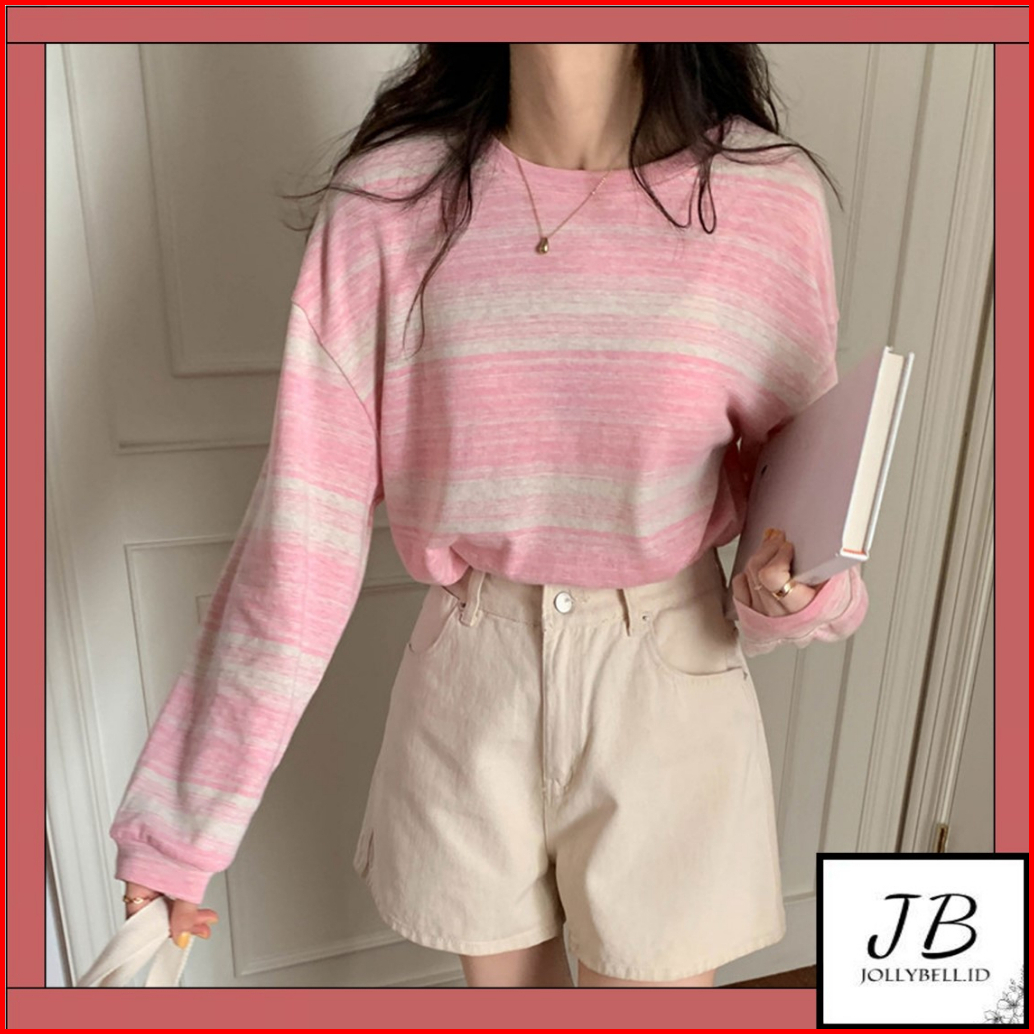 Jollybell.idbj1216 Baju Atasan Lengan Panjang Kaos Motif Vintage Wanita Kekinian Fashion Korean
