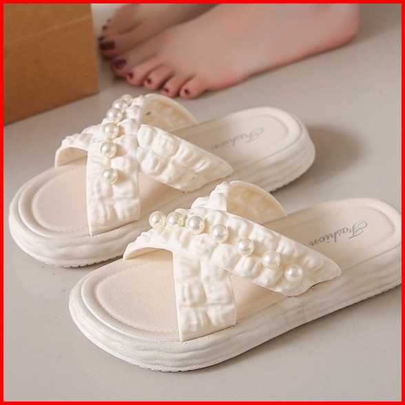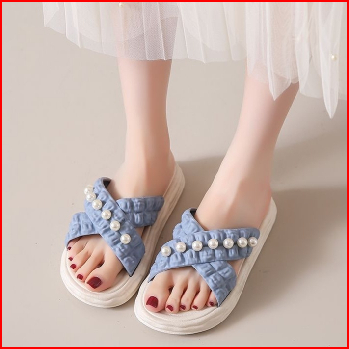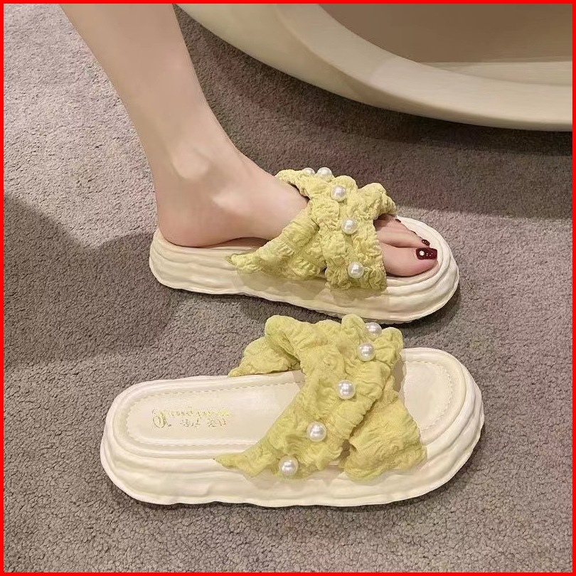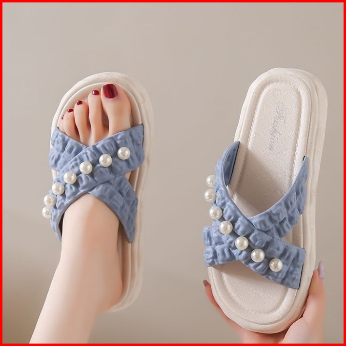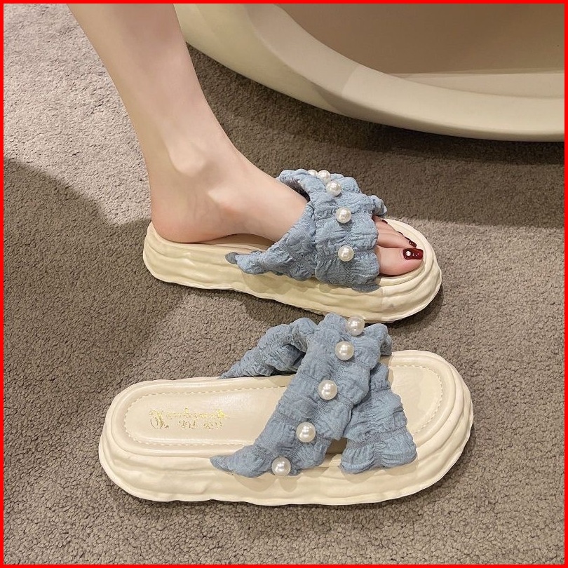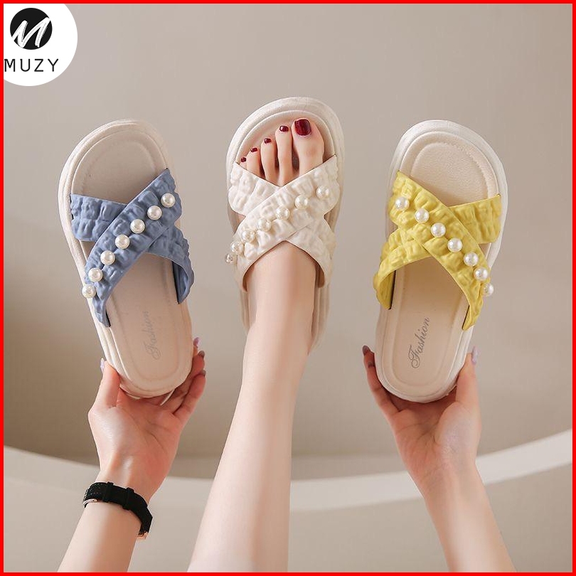 Muzy Sandal Wanita Flat Korean Tali Silang Mutiara Anti Slip Flat Shoes Wanita Sendal Wanita Hsn218