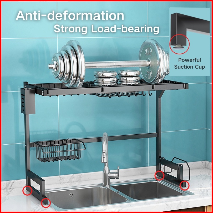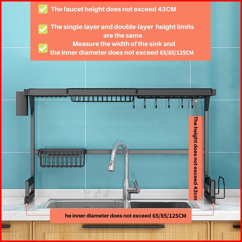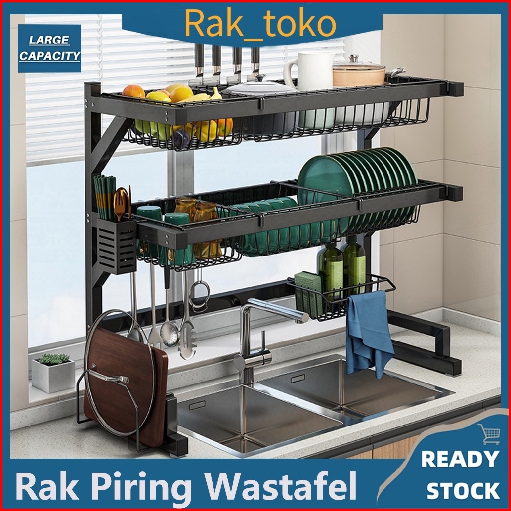 Rak Wastafel Cuci Piring Stainless Rak Dapur Rak Bumbu1 2 Rak 65 85 125 Peralatan Dapur Kokoh Kuat 2 Ukuran