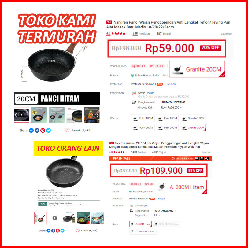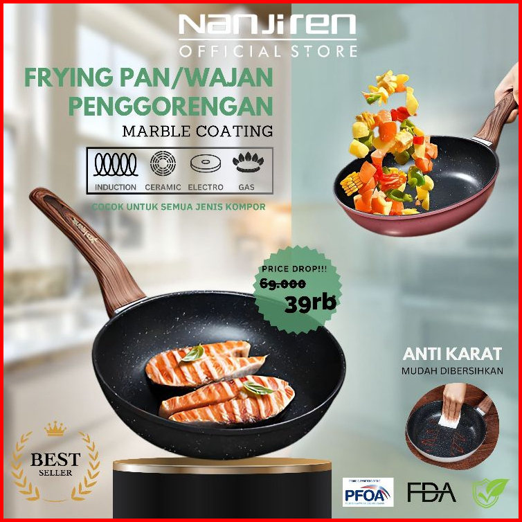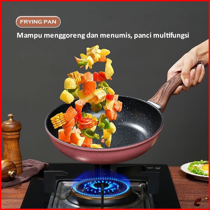 Nanjiren Wajan Penggorengan Gagang Anti Lengket Teflon Panci Batu Granit Granite Coating 18-24cm