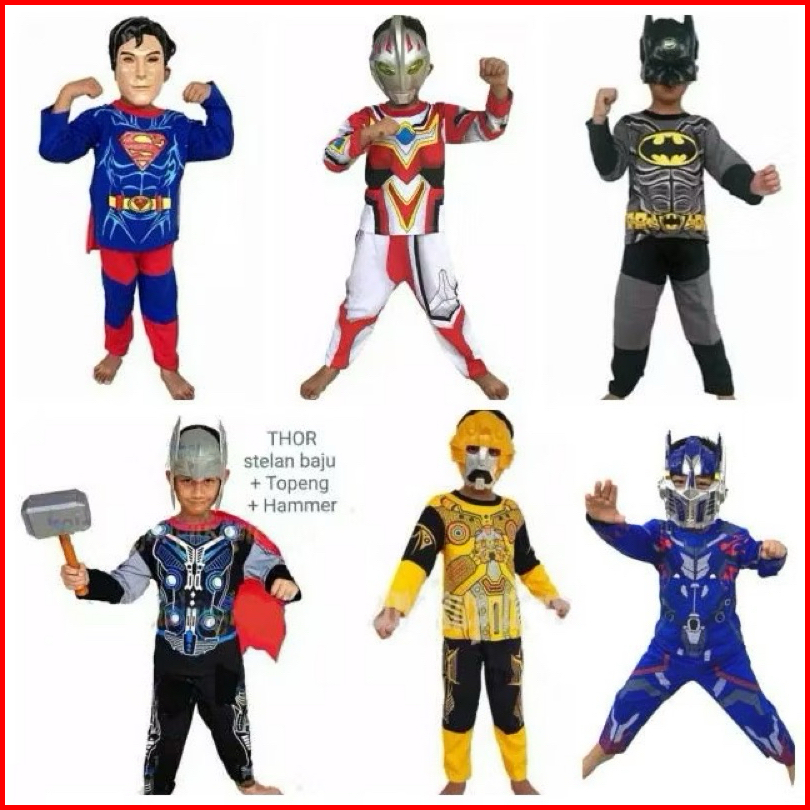 Gratis Topeng Setelan Baju Anak Laki Laki 1-9 Tahun Kostum Panjang Superhero