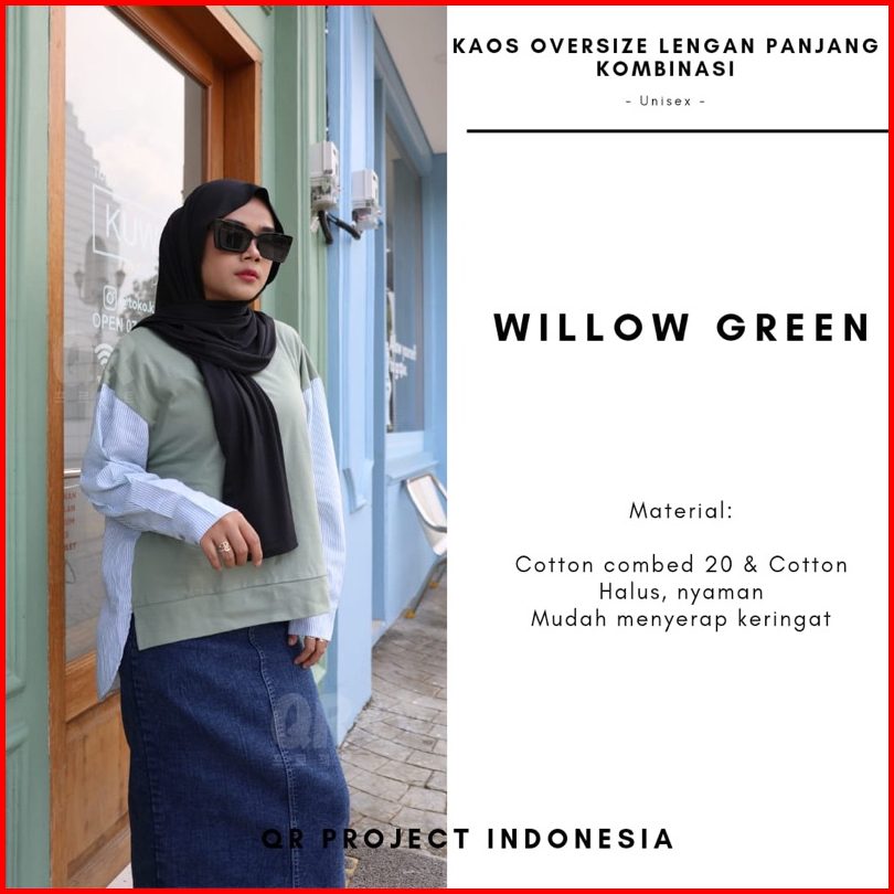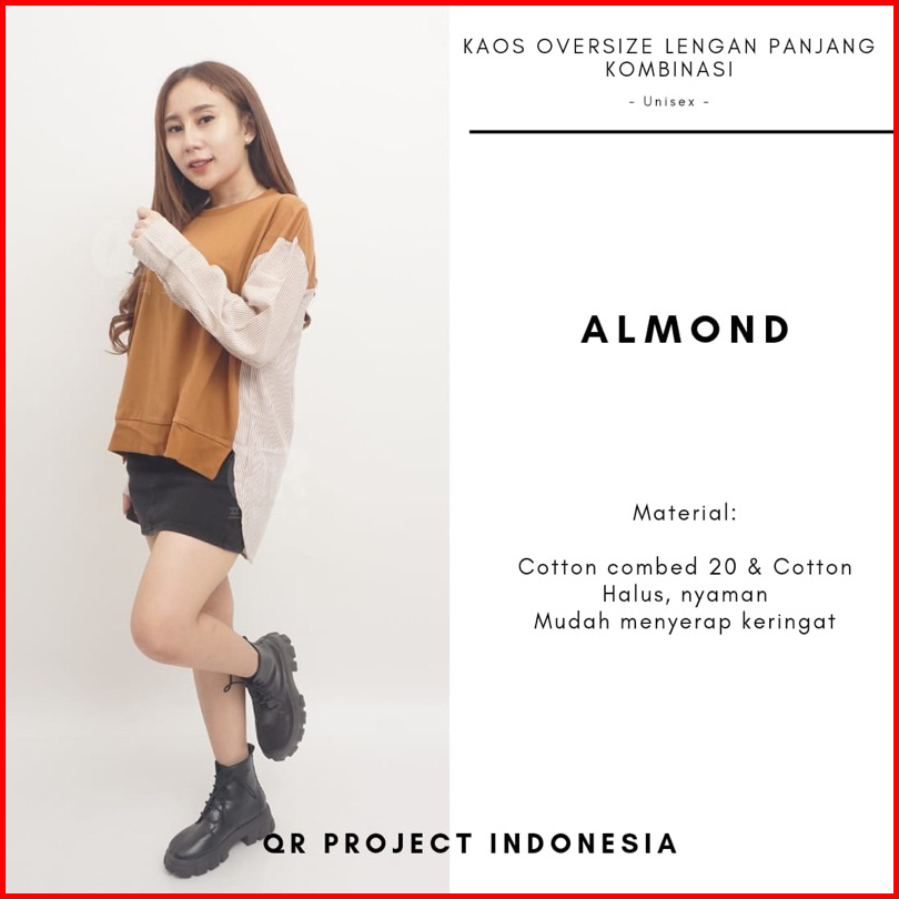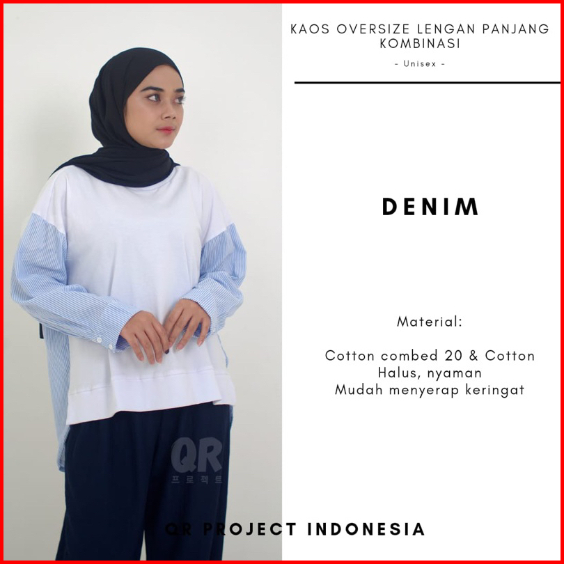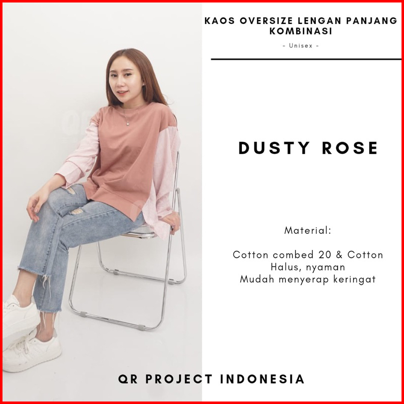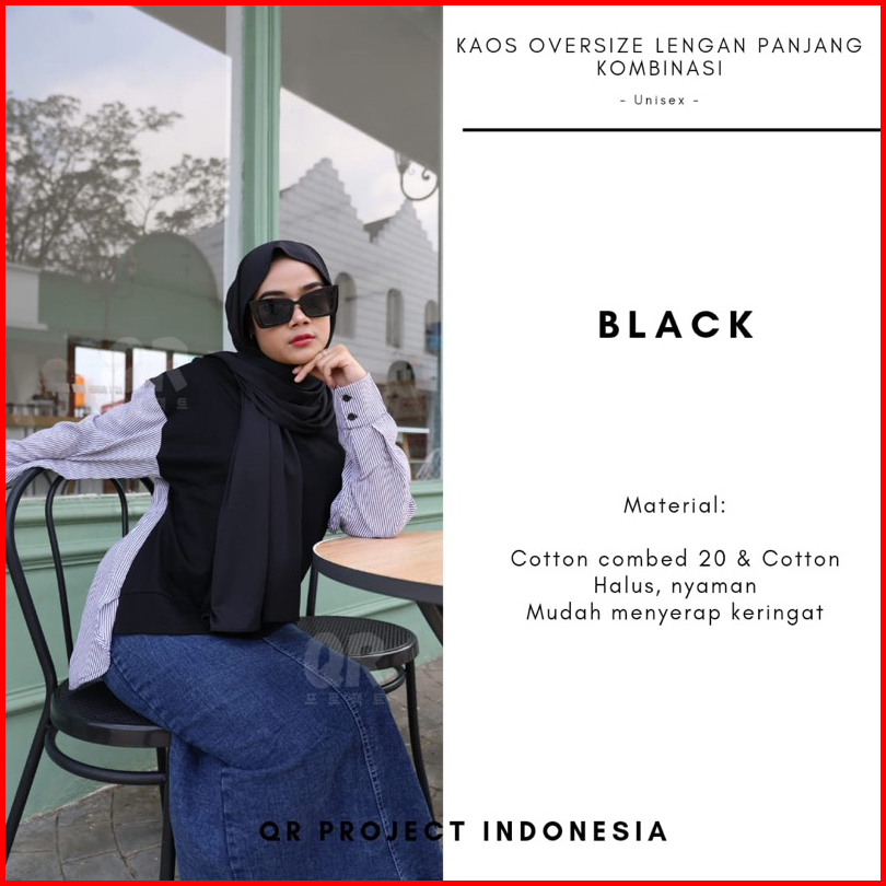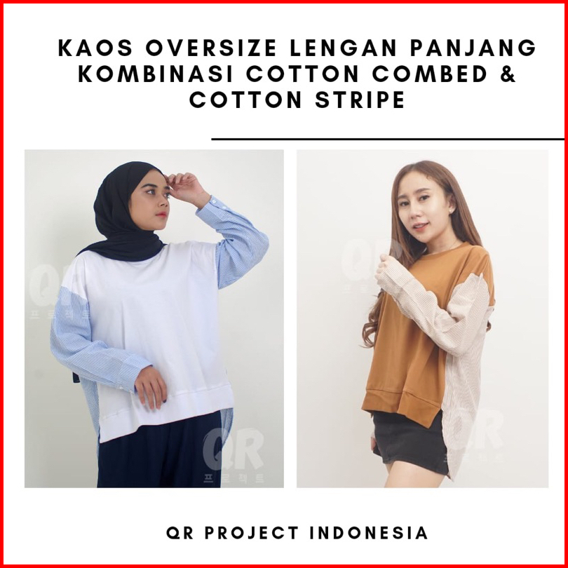 Kaos Oversize Lengan Panjang Cotton Combed 20s Kombinasi Cotton Stripe Salur