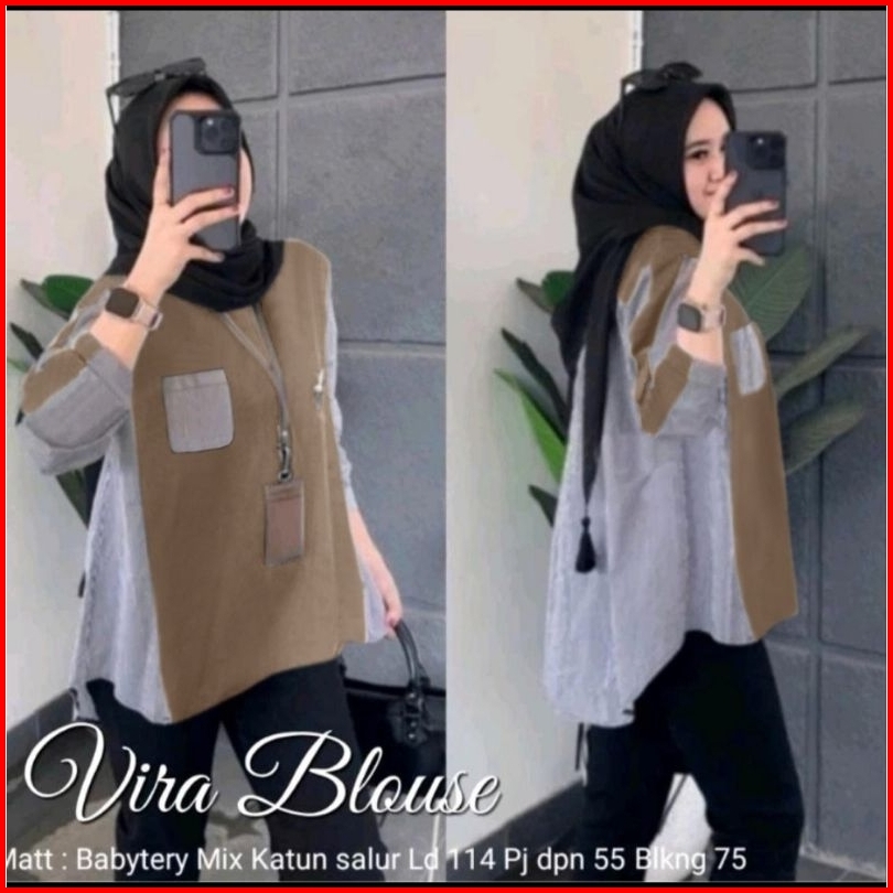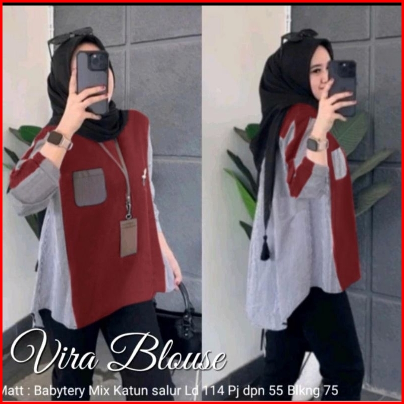 Vira Blouse 3 Uk M - Xxl Jumbo Blouse Kantor Outfit Hangout Baju Wanita Baju Kantor Baju Jalan Baju Ootd Busana Muslim K
