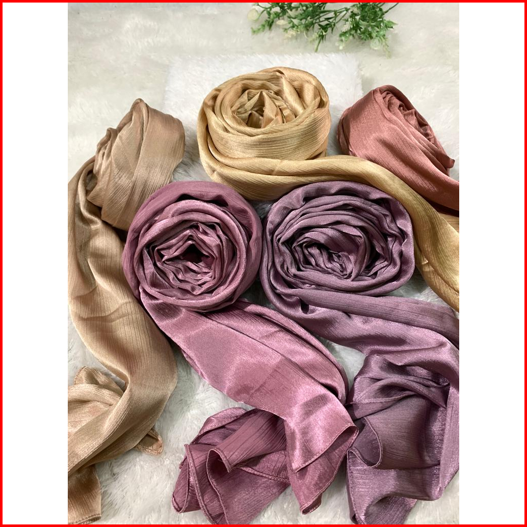 Pashmina Credenza Satin Silk Pashmina Silk Satin Textur Cringkle Pashmina Cradenza Satin Silk Textur Premium
