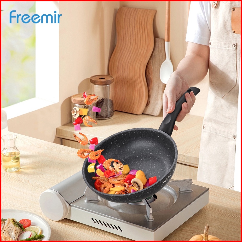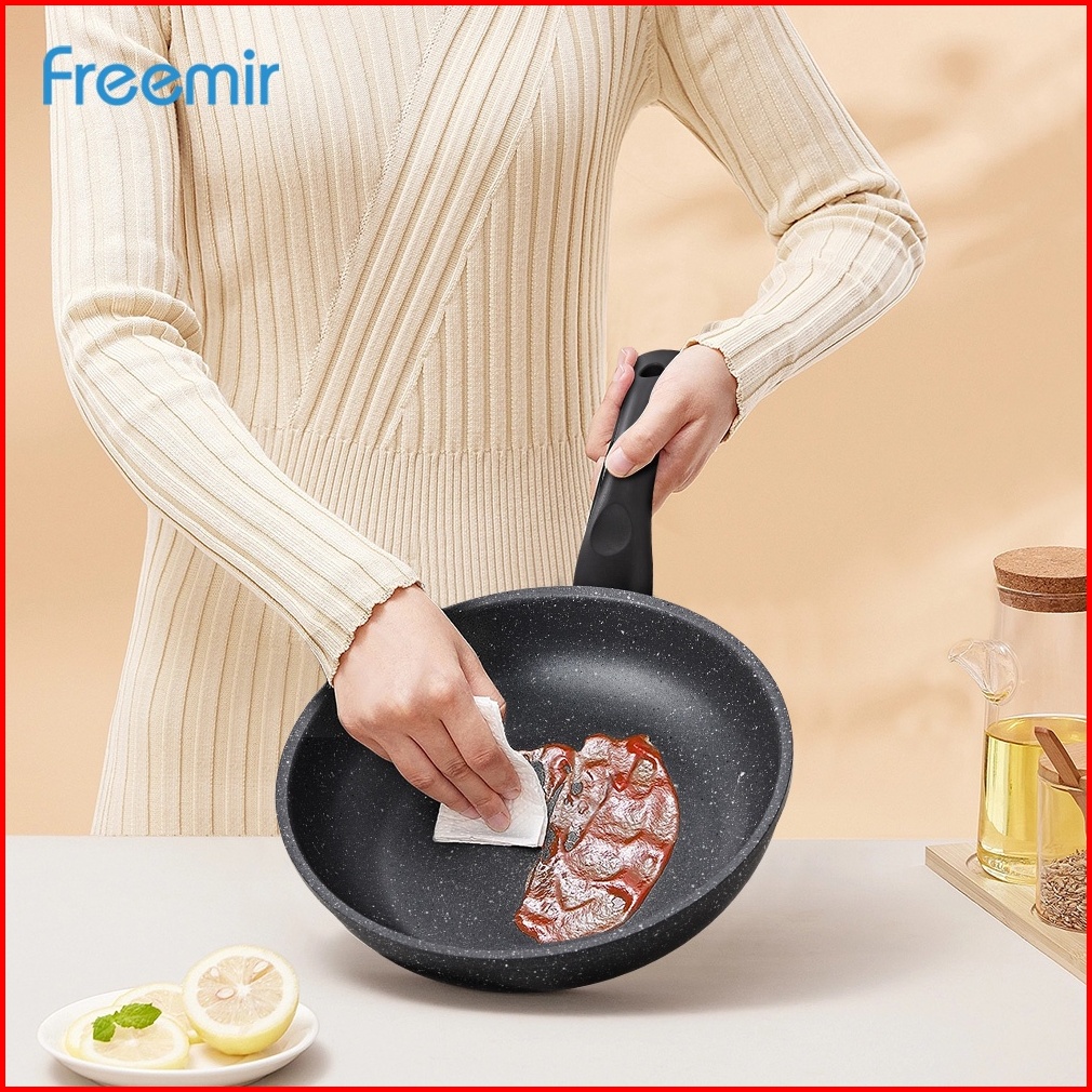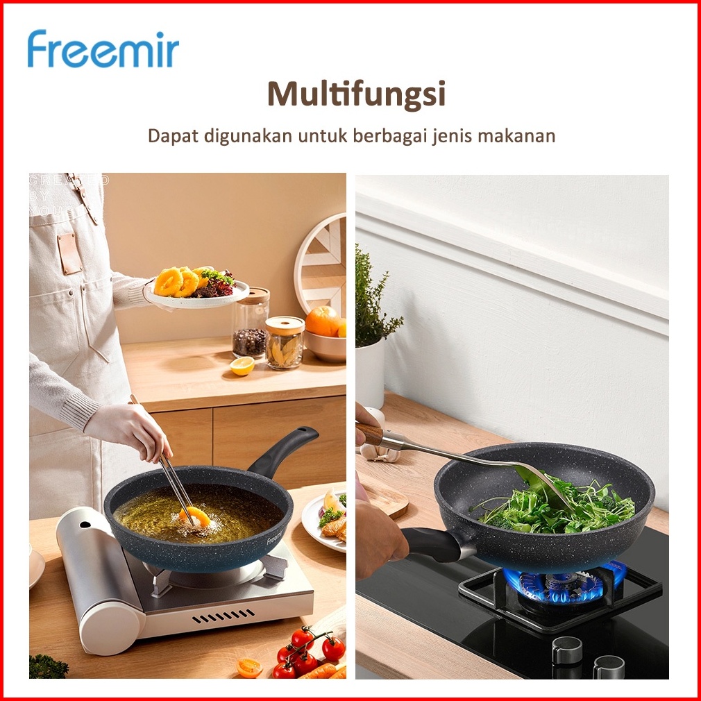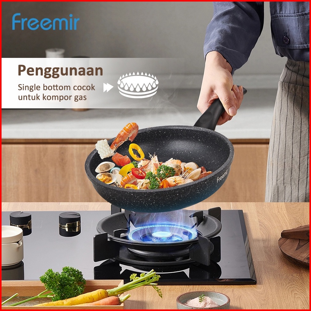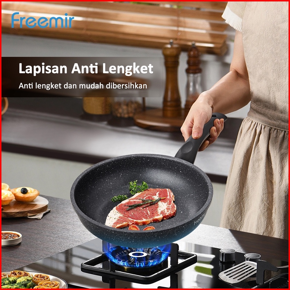 Freemir 20 Cm Wajan Penggorengan Anti Lengket Non Stick Multifungsi Single Bottom Hitam