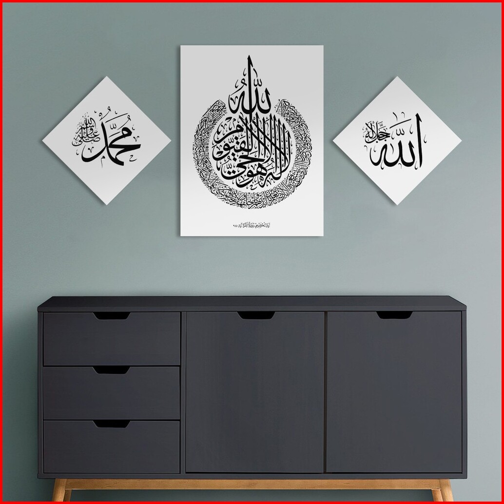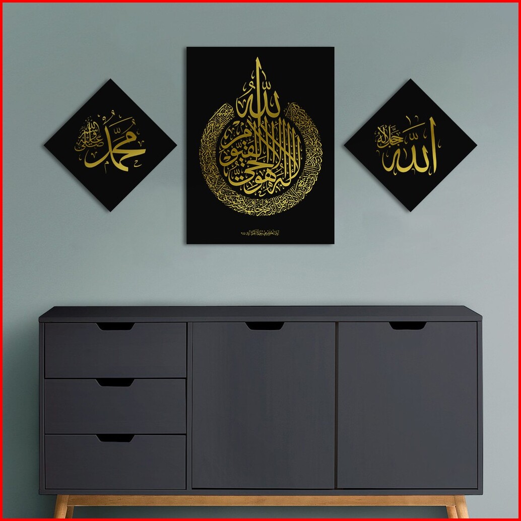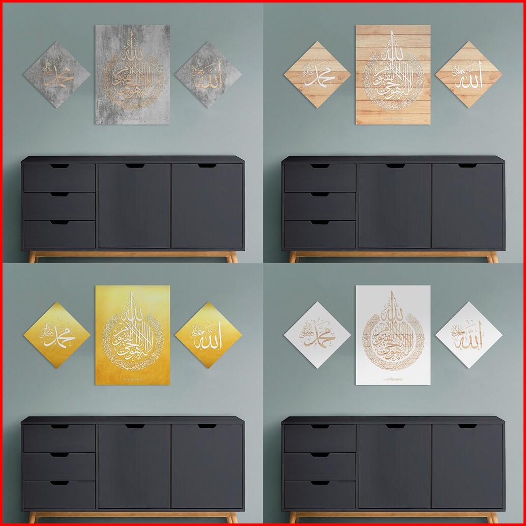 Hiasan Dinding Wall Decor Poster Dinding Kaligrafi Jumbo Satu Set Allah Muhammad Ayat Kursi - Ka