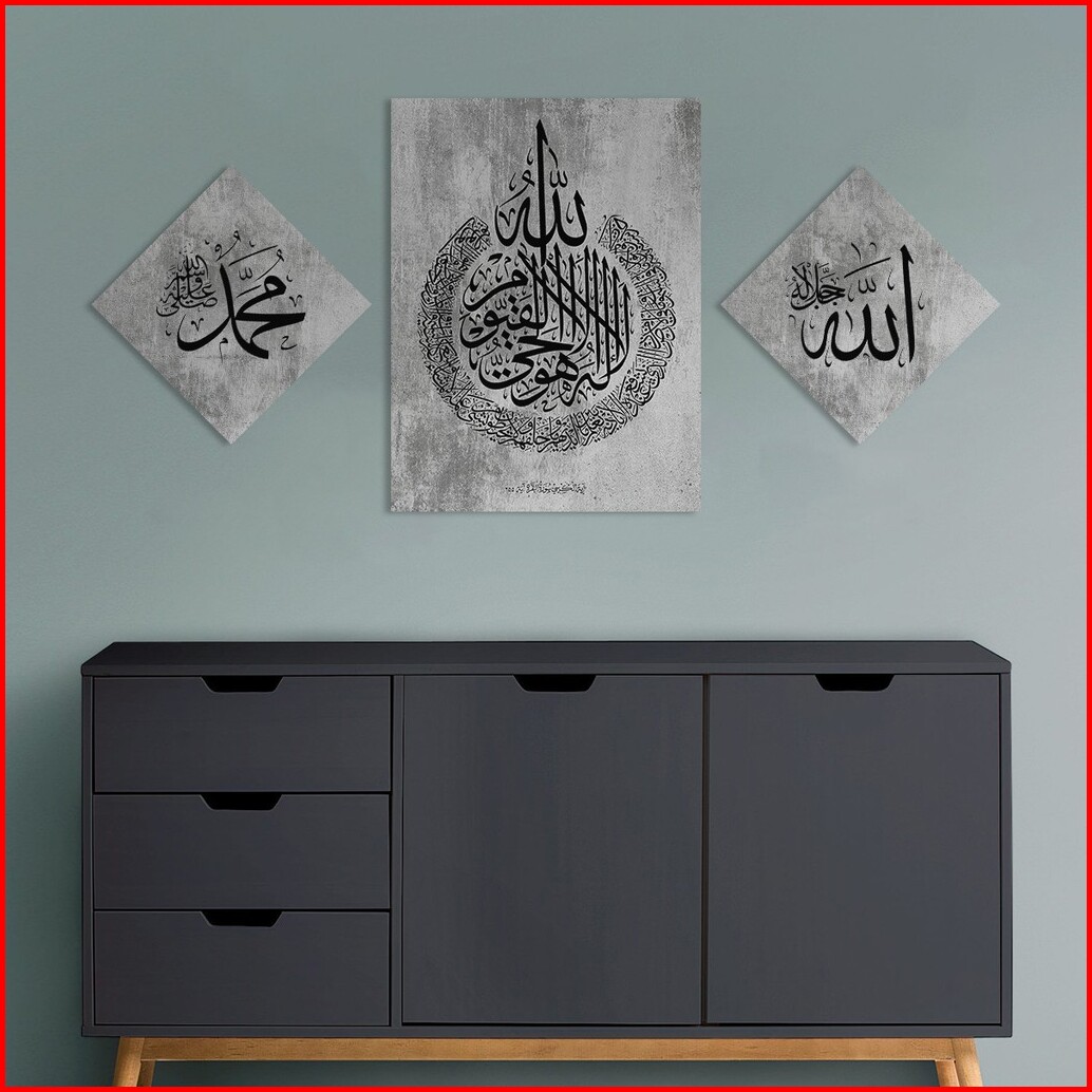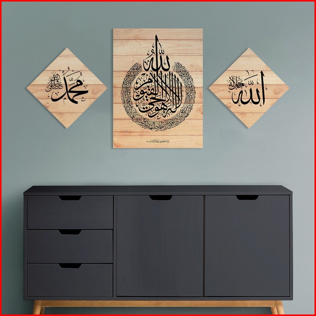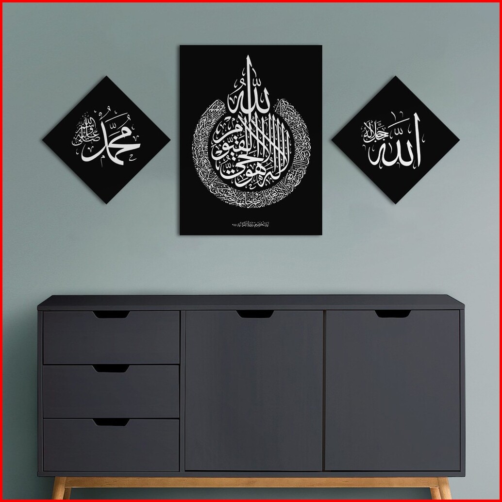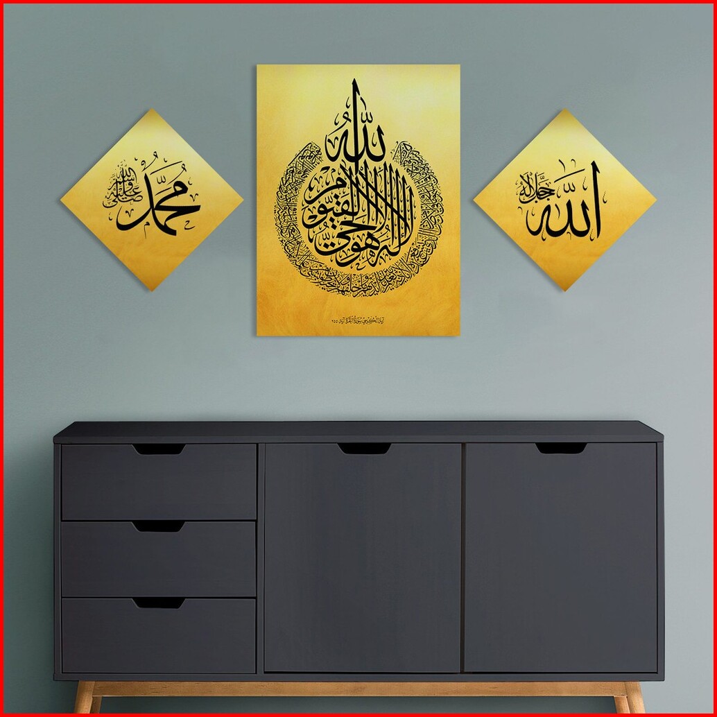 Hiasan Dinding Wall Decor Poster Dinding Kaligrafi Jumbo Satu Set Allah Muhammad Ayat Kursi - Ka