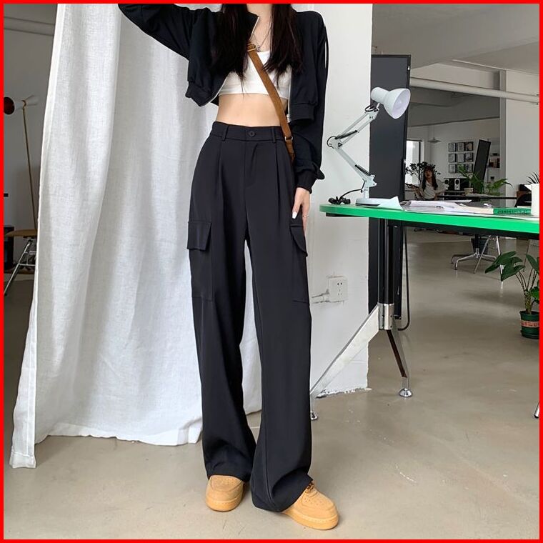 Celana Wanita Kulot Hitam Korea Highwaist Wanita Polos Loose Cullote Pants Celana Panjang Suit Pants