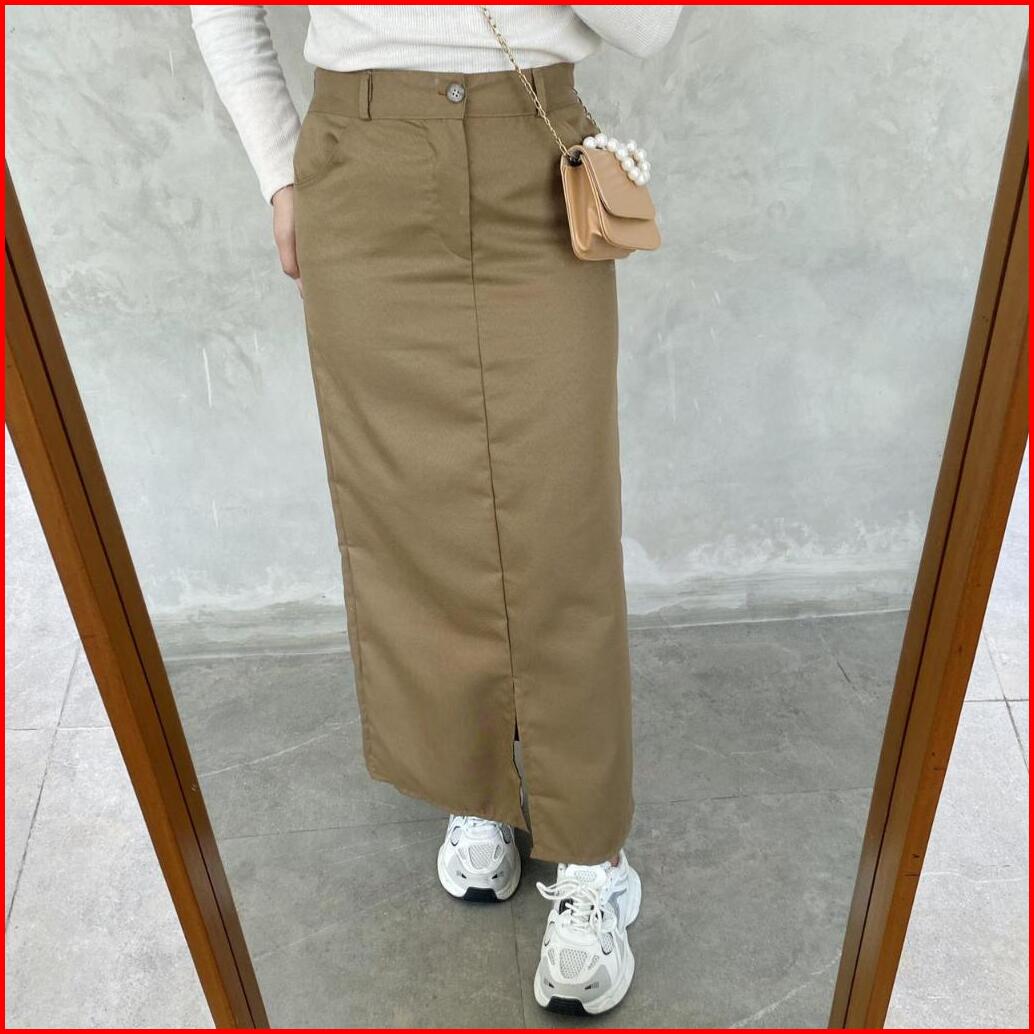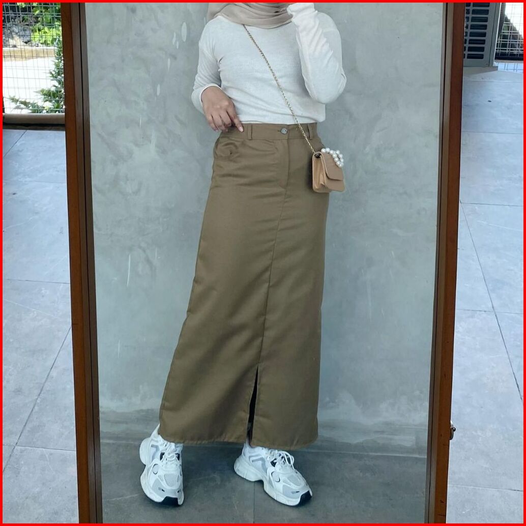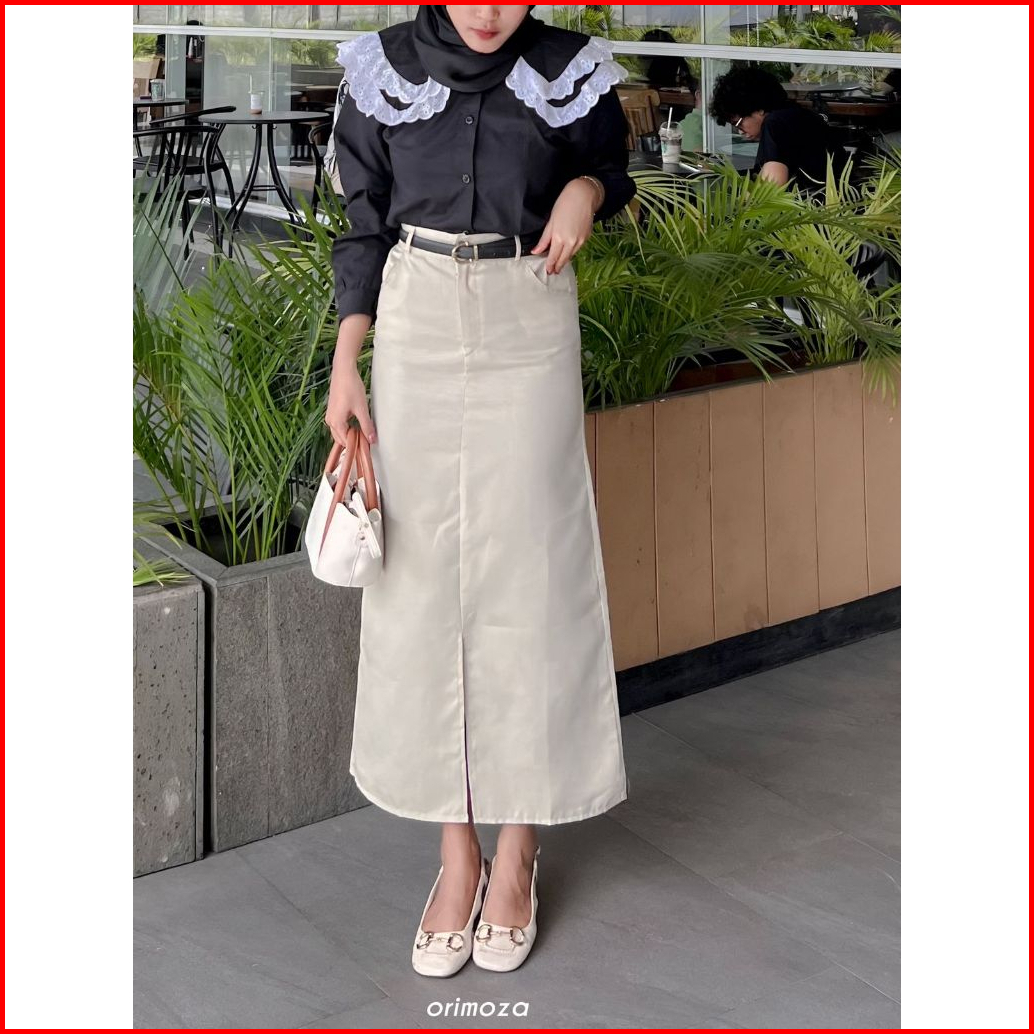 Orimoza Rok Span Katun Drill Belah Depan Polos Tissa