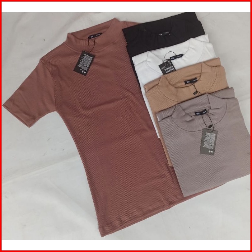 Inner Turtleneck Rib Knit - Dalaman Hijab Turtleneck Shirt Lengan Pendek Bahan Rib Knit Premium