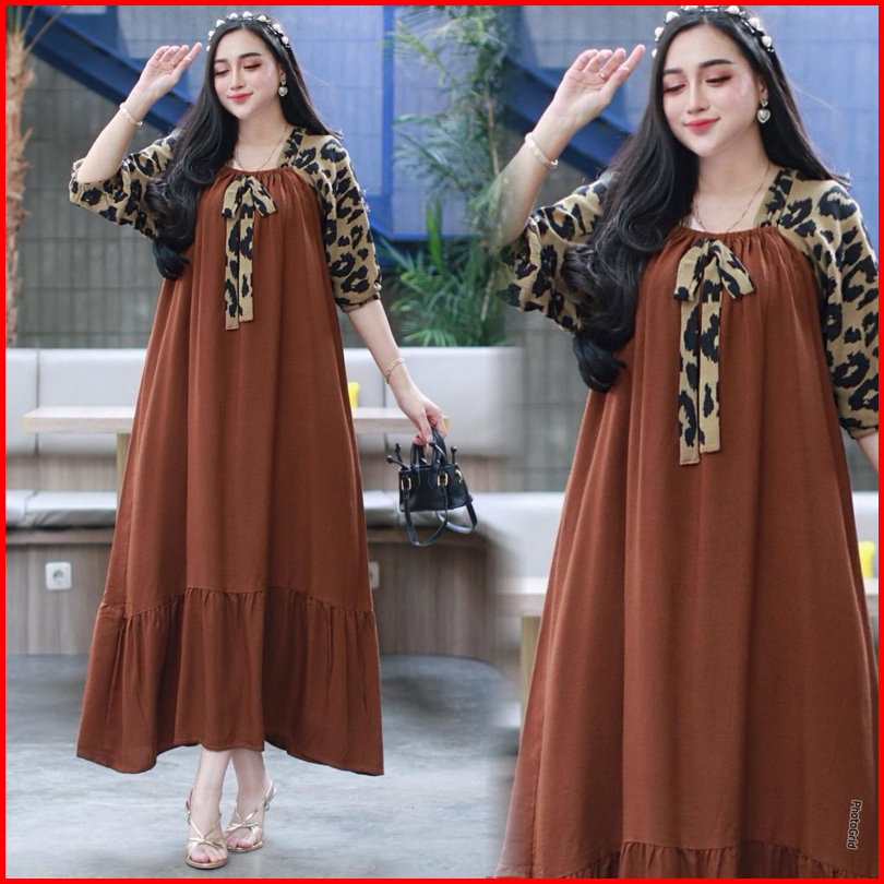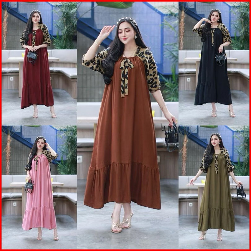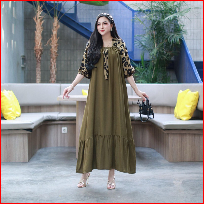Daster Viral Kekinian Gamis Midi Dress Lengan 3 4 Rayon Motif Premium