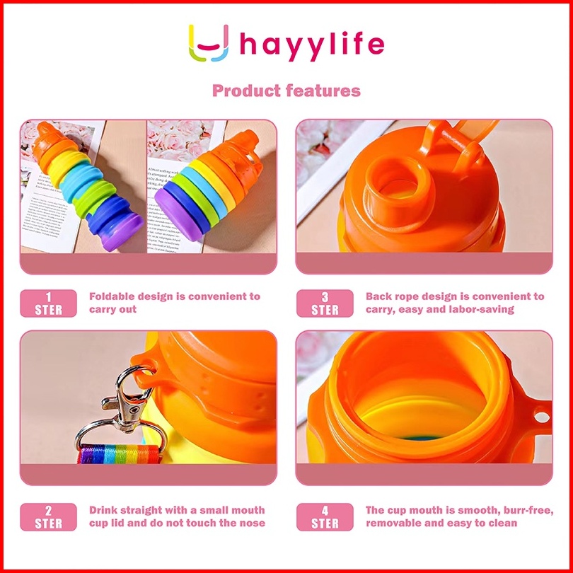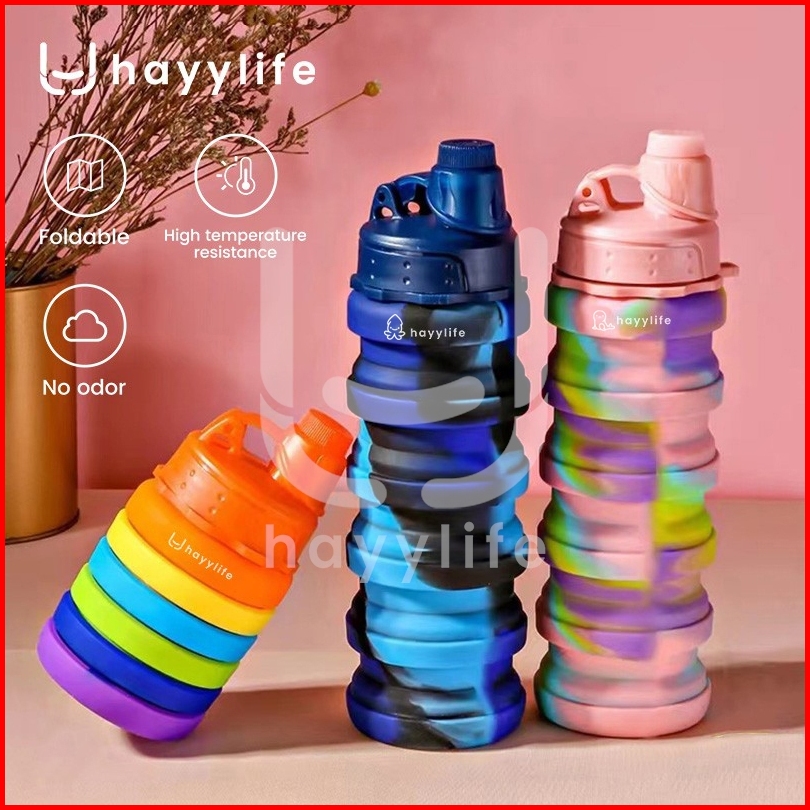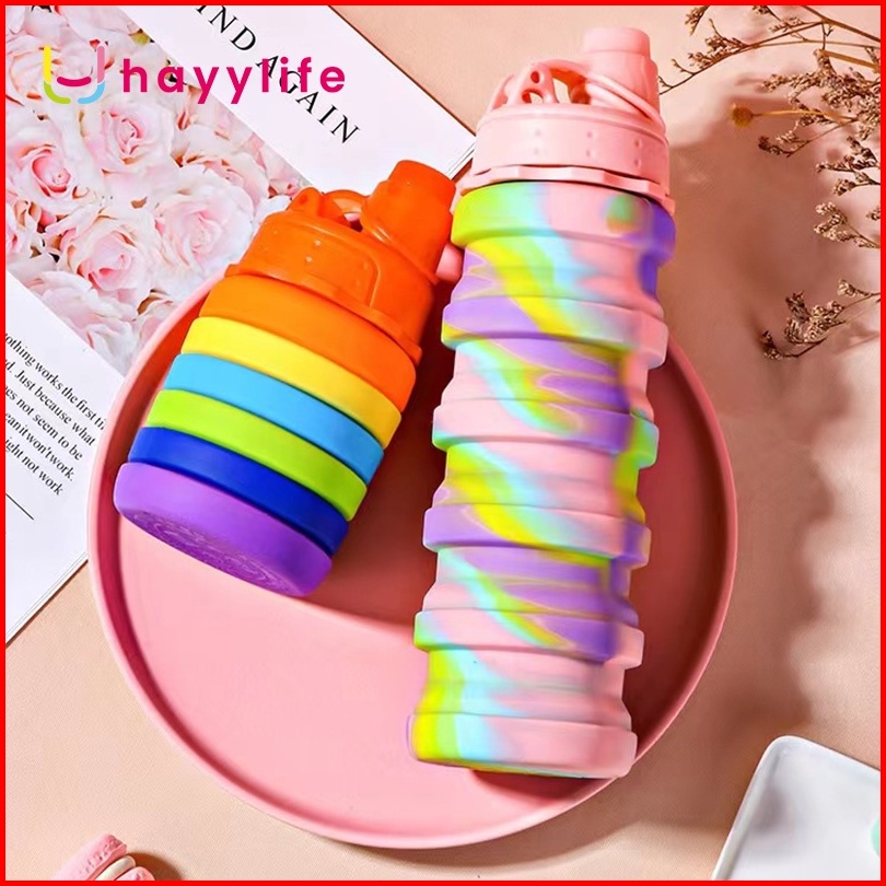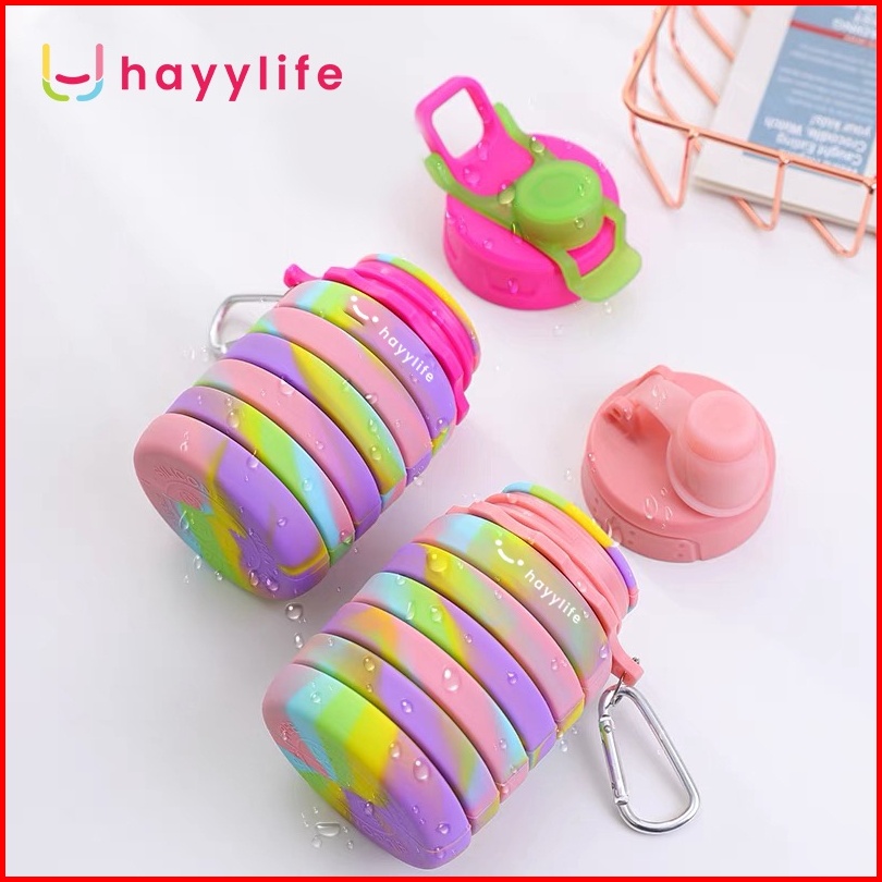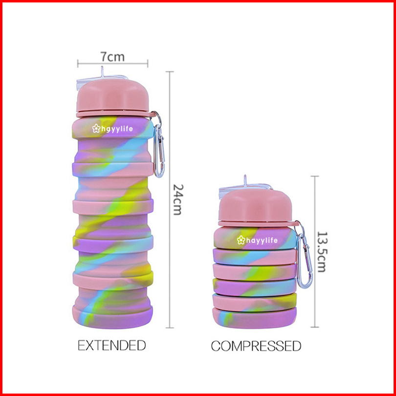 Hayylife Botol Minum Lipat Silicone Botol Minum Anak Isi 500ml Dengan Hook Bpa Free Hl-aab562