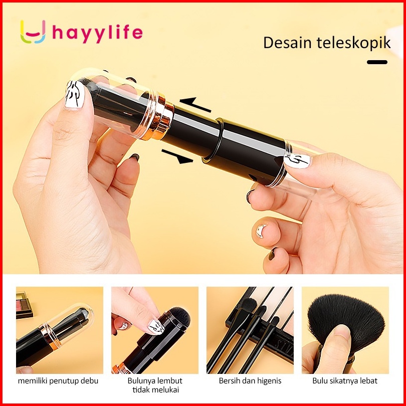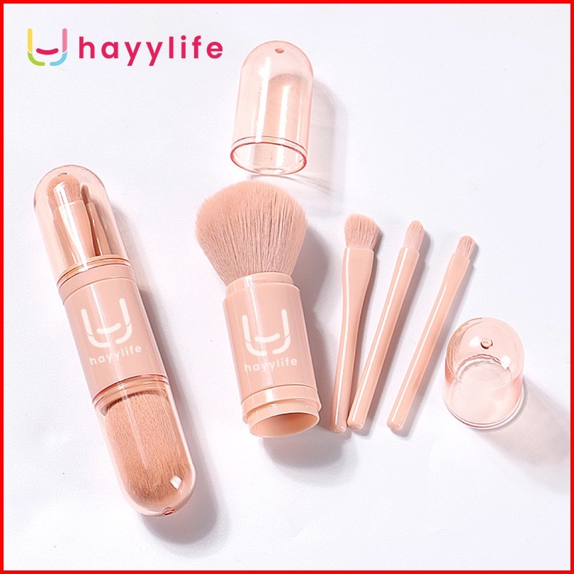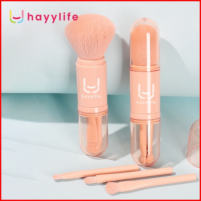 Hayylife Portable Telescopic 4pcs Brush Makeup Set Brush Travel Kuas Make Up Hl-bcb512