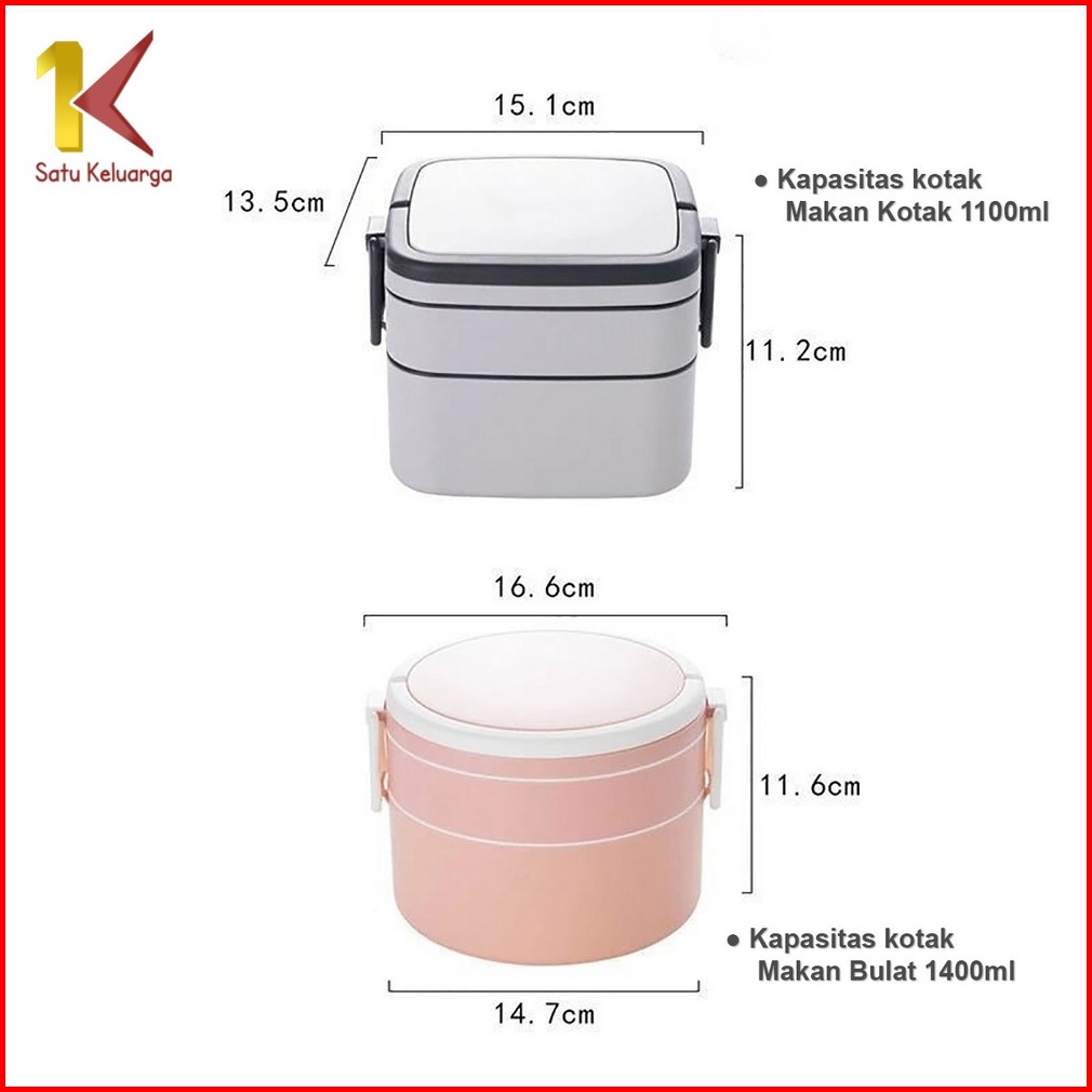 Satu Keluarga Kotak Makan 2 Tingkat C478 Tempat Bekal Makan Double Layer Food Grade Lunch Box Susun Bahan Plastik