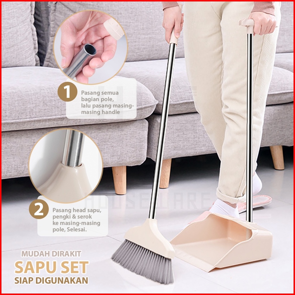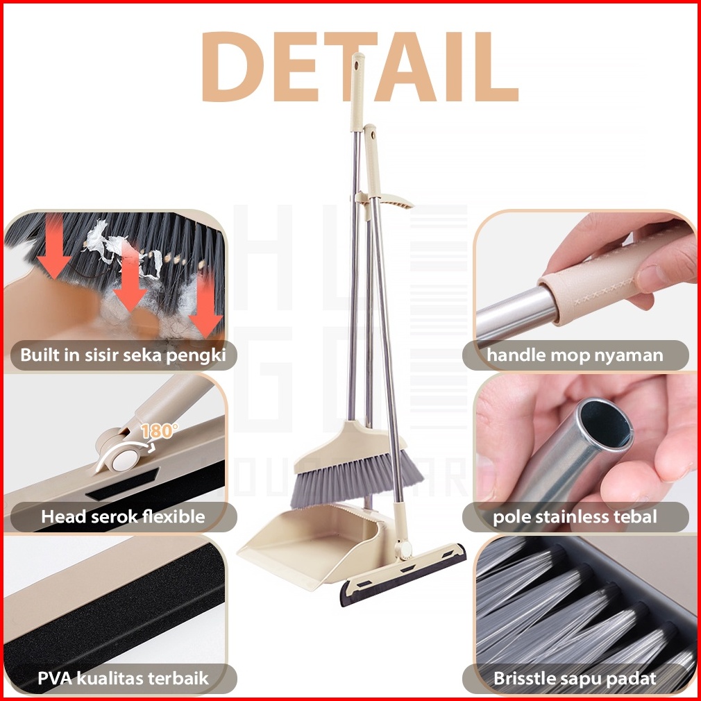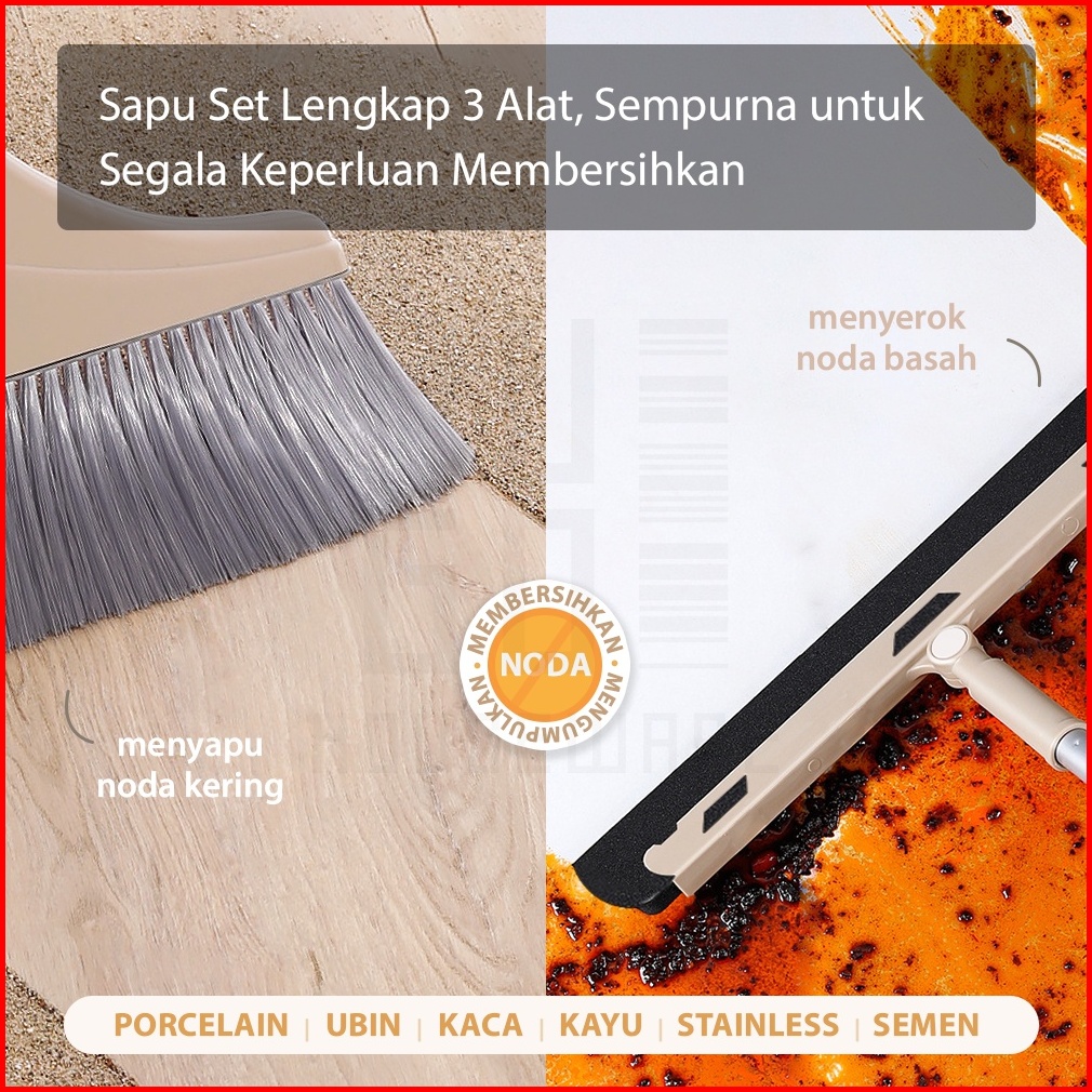 Hugo Sapu Lantai 3 In 1 Broom Set Alat Pembersih Lantai Sapu Pengki Serokan Air
