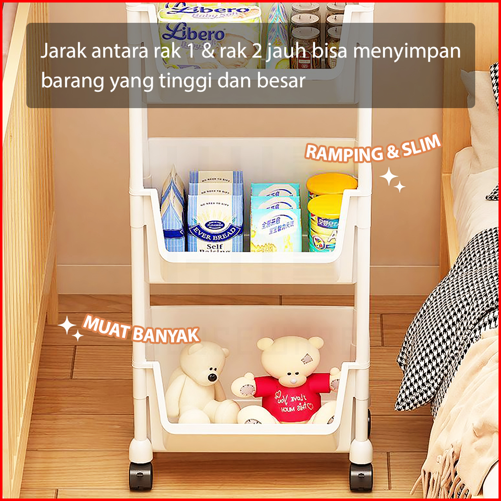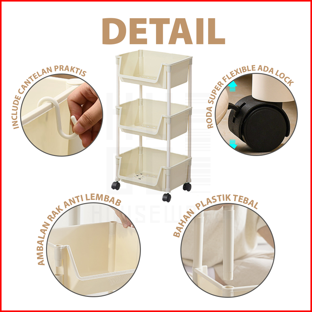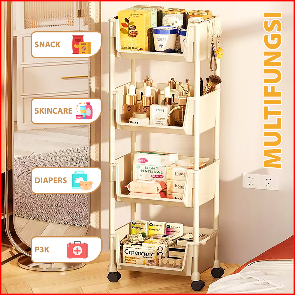 Hugo Rak Dapur Serbaguna Rak Troli Rak Kamar Mandi Rak Susun Plastik Dengan Roda